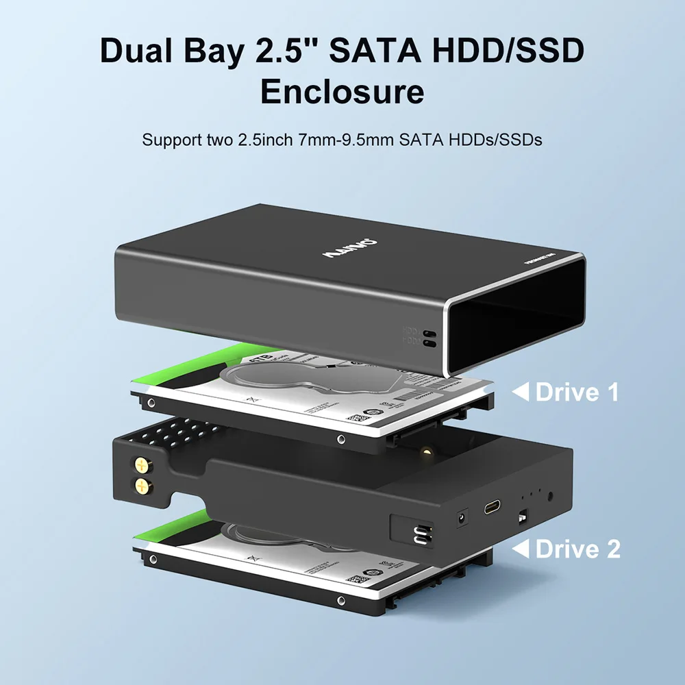 Caja HDD de doble bahía tipo C de 2,5" con RAID