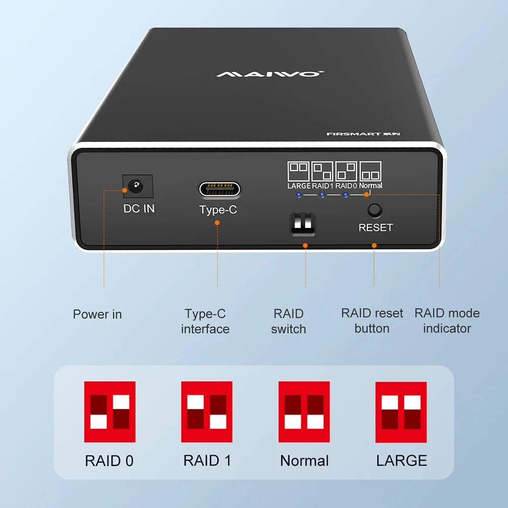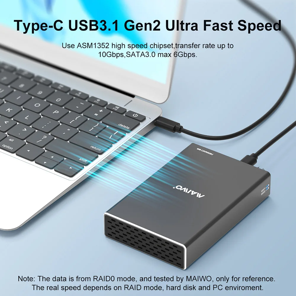 Comprar Caja de matriz de disco duro MAIWO de doble bahía para caja HDD SSD externa de 2,5 pulgadas RAID Array tipo C caja de matriz de disco Dual de 2,5"