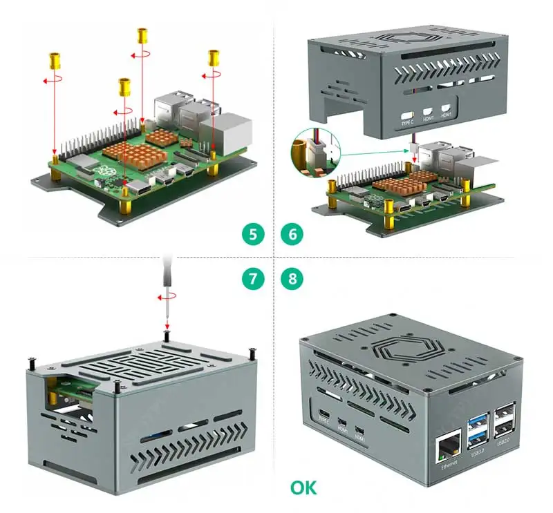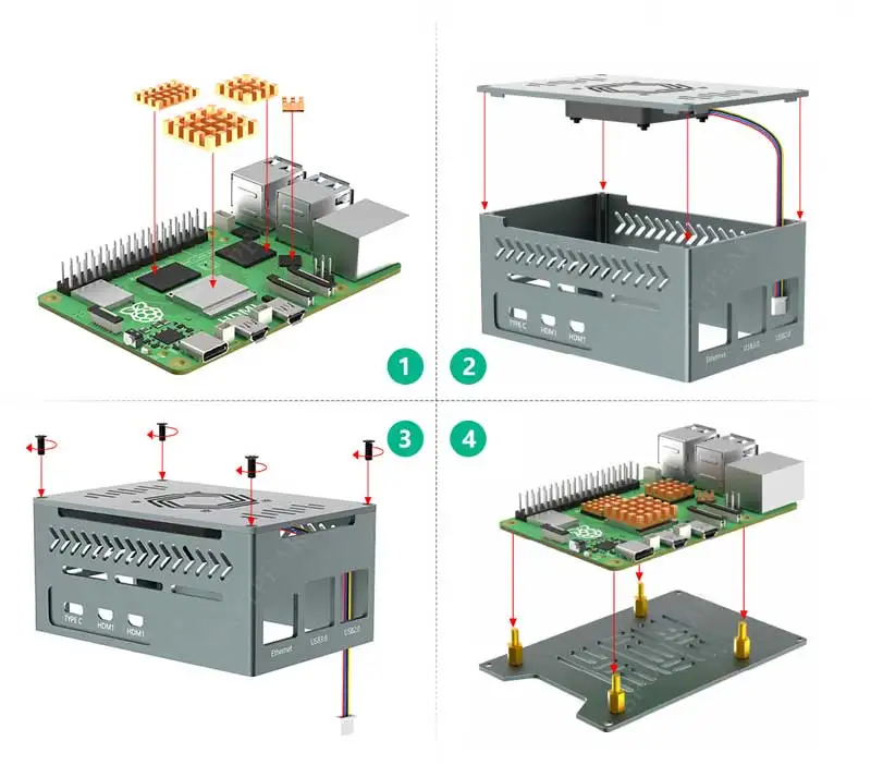 [] La carcasa está hecha de aluminio muy liviano y puede proteger muy bien la placa Raspberry Pi 5.La placa superior de la carcasa está hecha de plástico y no afectará las señales WiFi o Bluetooth.