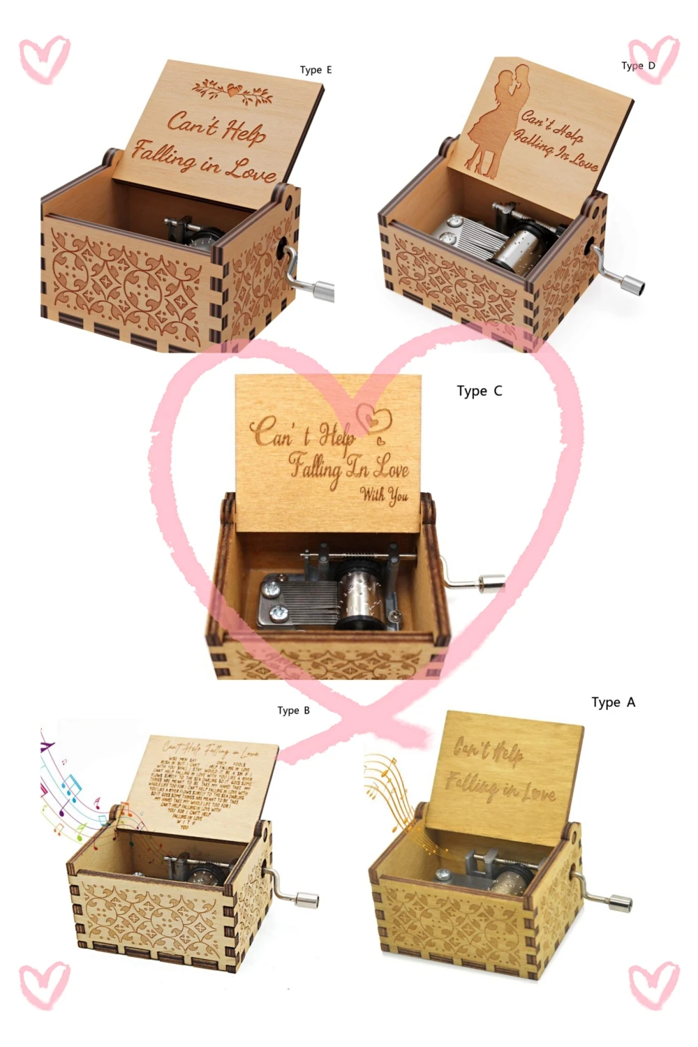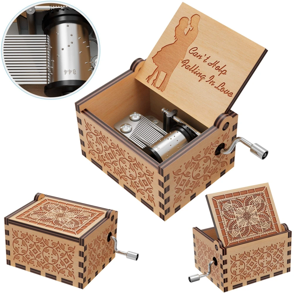 Comprar Caja de música de madera con grabado vintage, caja de música con manivela, no puede evitar que se enamore