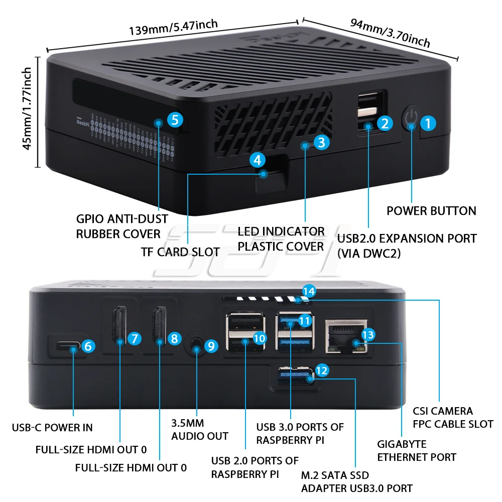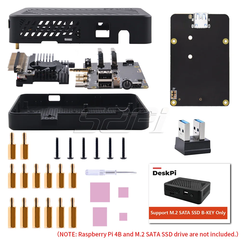 Nota: La unidad SSD M.2 SATA y RaspberryPi 4B no están incluidas en el paquete, se requiere compra adicional.