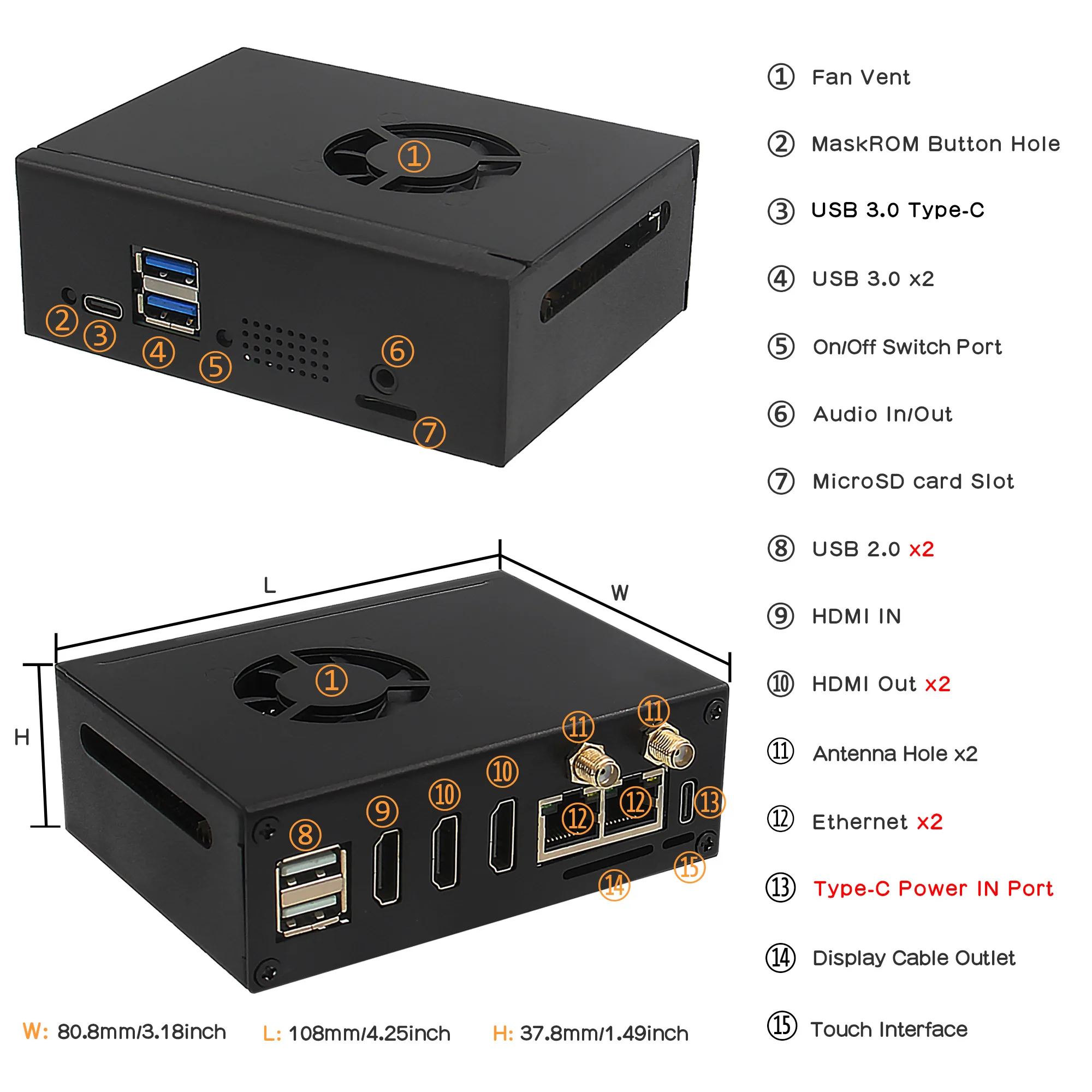 Todos los puertos y ranuras del estuche pueden coincidir con Orange Pi 5 Plus