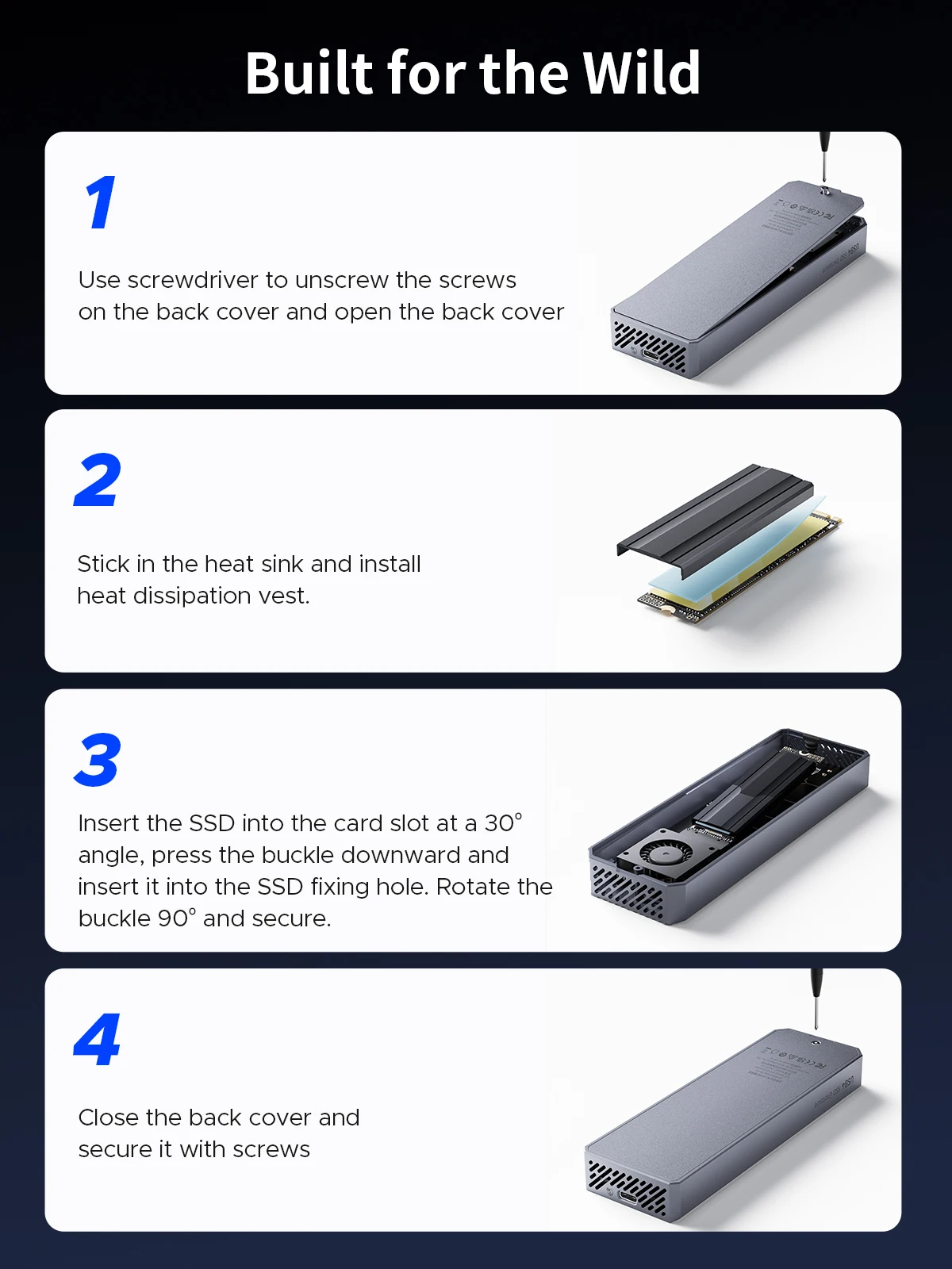 Si usted es un diseñador, viajero de negocios, fotógrafo, creador de contenido o videógrafo, los recintos ORICO USB4 le permiten manejar con confianza grandes cantidades de videos, imágenes, archivos, y datos digitales de forma rápida y sencilla. Amplíe su almacenamiento digital, haciendo que su trabajo y su vida sean más fáciles y eficientes.