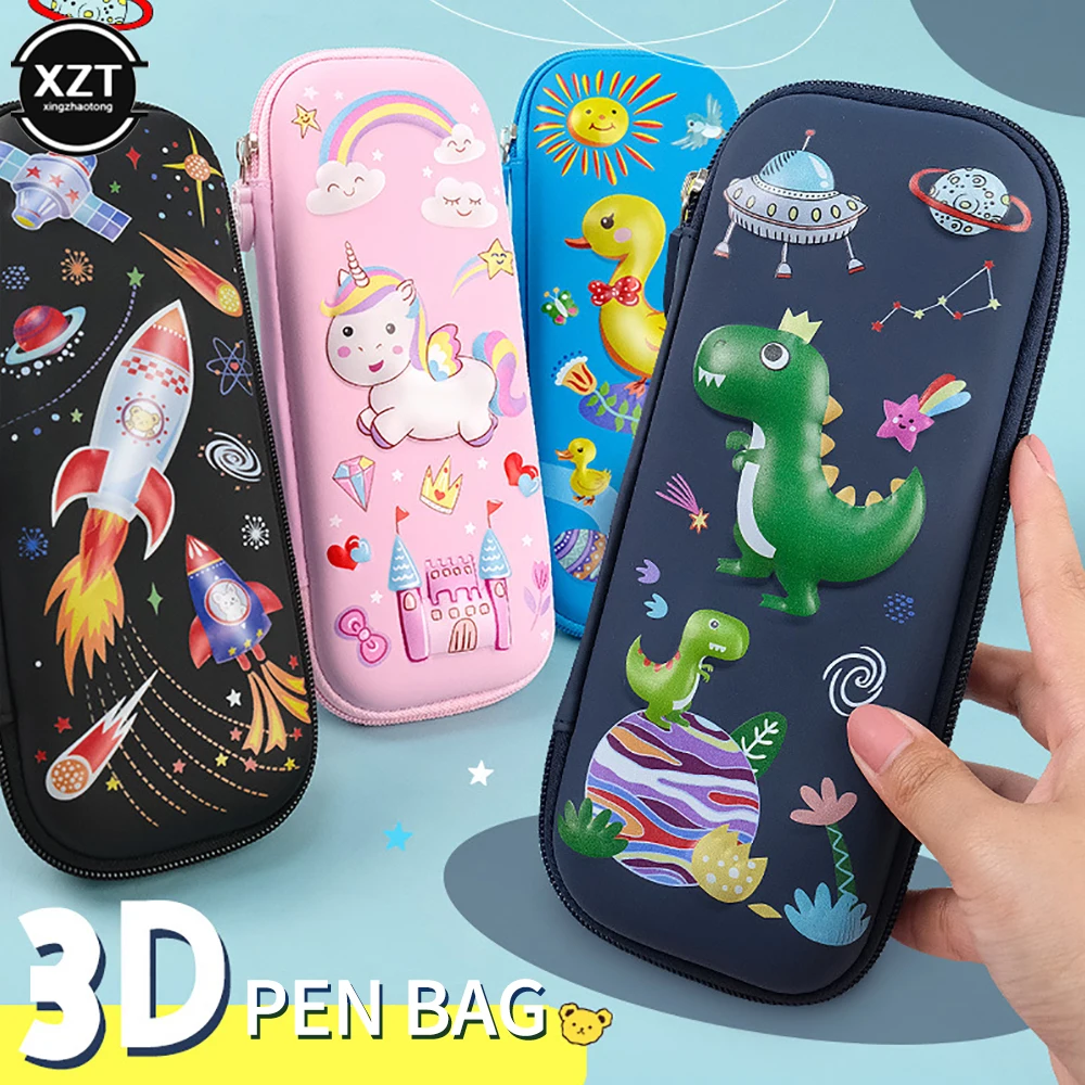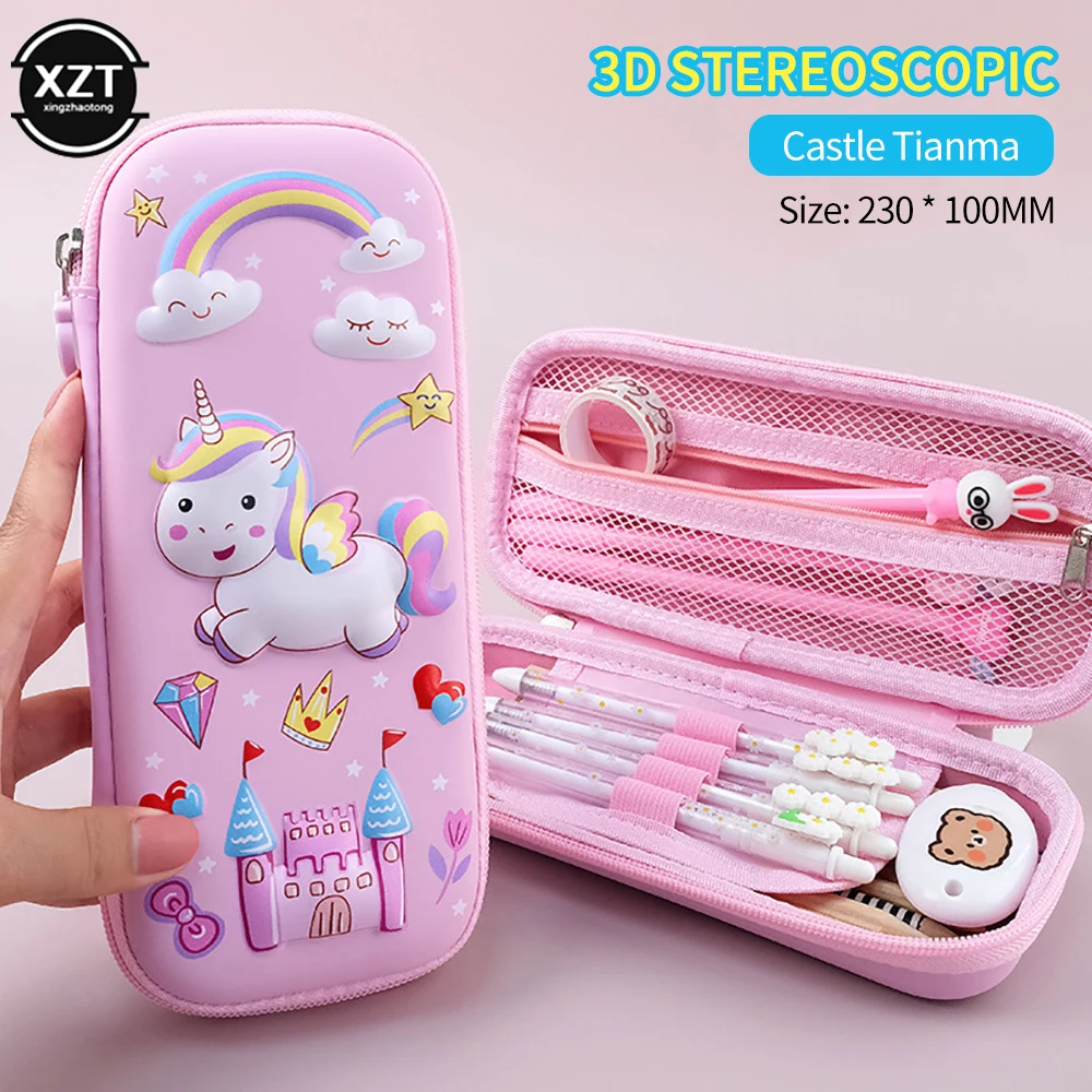 Comprar Caja de papelería 3D de unicornio EVA para estudiantes, caja de almacenamiento de lápices de tres capas, gran capacidad, caja de lápices para Colegio
