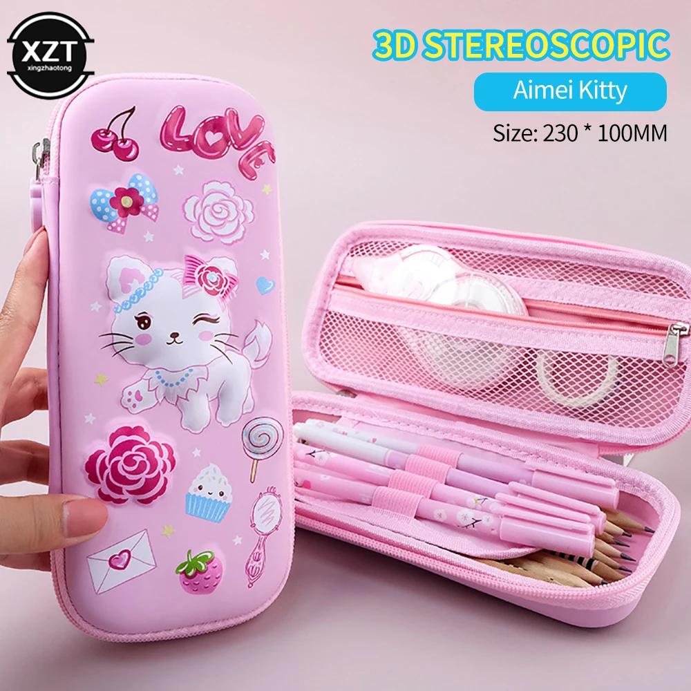Caja de lápices bonita EVA unicornio 3D, caja de papelería para estudiantes, caja de almacenamiento de lápices para niños, estuche de lápices de gran capacidad de tres capas