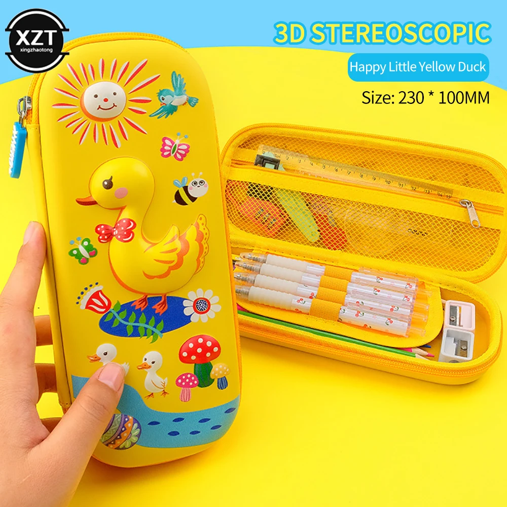 Caja de lápices bonita EVA unicornio 3D, caja de papelería para estudiantes, caja de almacenamiento de lápices para niños, estuche de lápices de gran capacidad de tres capas