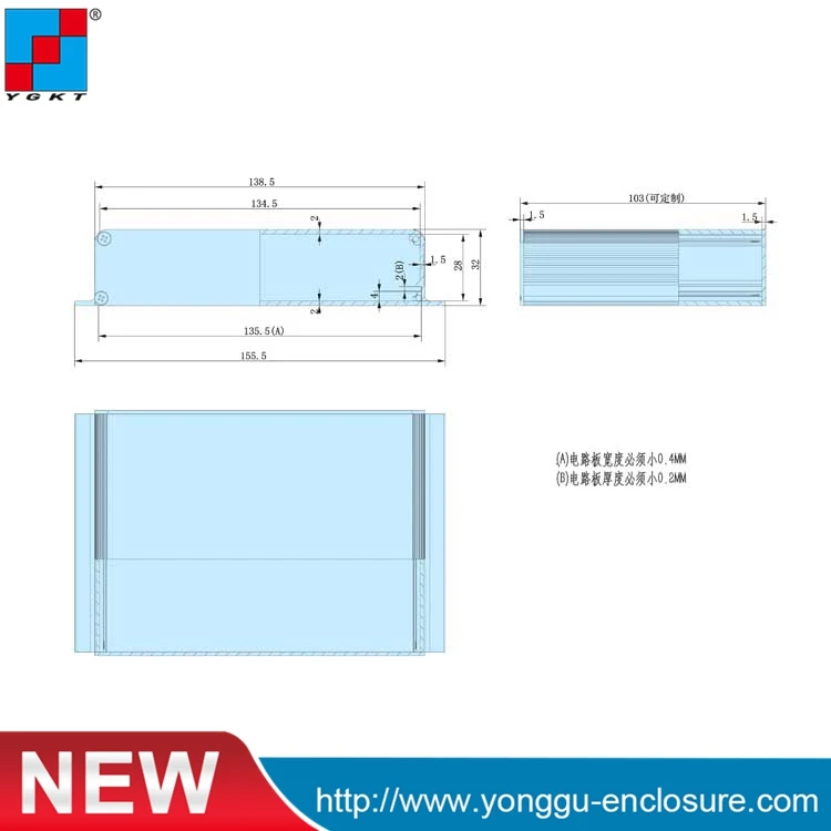 Comprar Caja pcb de aluminio para dispositivos electrónicos, caja de aluminio extruido de 155x32x155mm (wxhxl), para gps, YGK-029