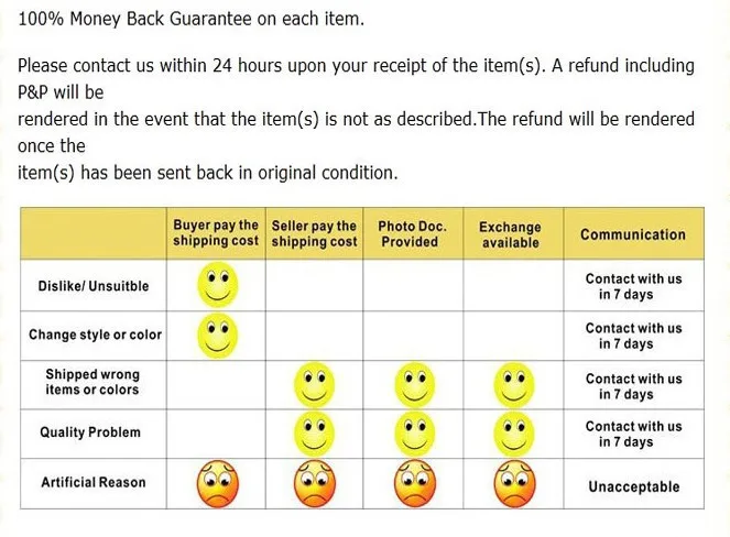 Si tiene algún problema con nuestros artículos o servicios, no dude en contactarnos primero antes de dejar un comentario negativo. Haremos todo lo posible para resolver cualquier problema y brindarle el mejor servicio al cliente.
