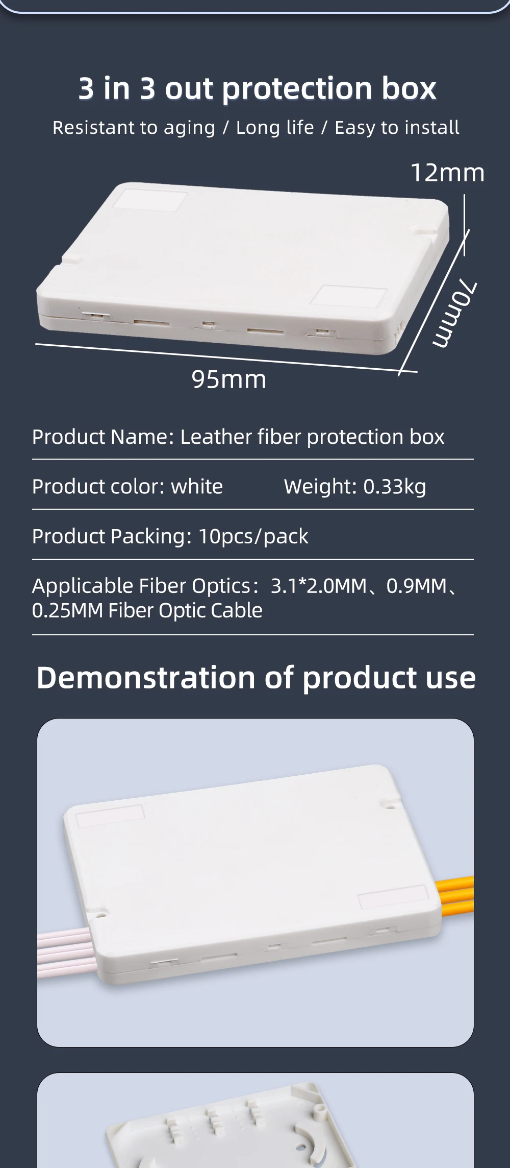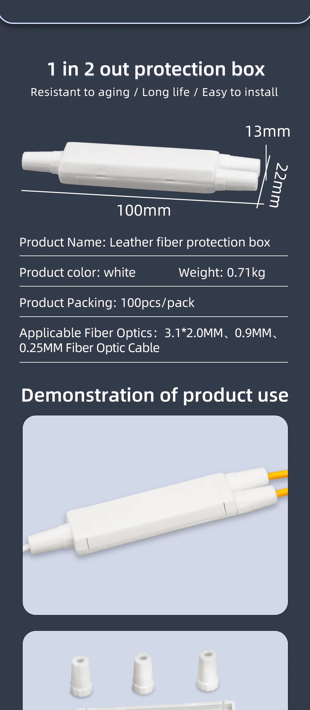 Fibra óptica aplicable: cable de fibra óptica de 3,1 * 2,0 mm, 0,9 mm, 0,25 mm