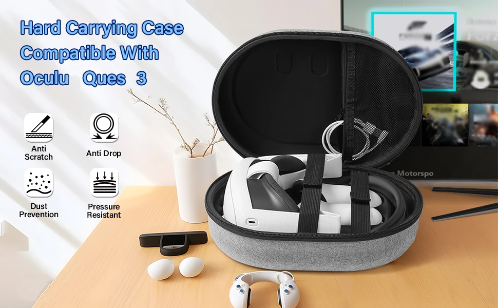 Comprar Caja protectora de auriculares VR para Meta Quest 3, Estuche de transporte, carcasa dura de EVA, bolsa de almacenamiento de viaje portátil para accesorios Meta Quest 3