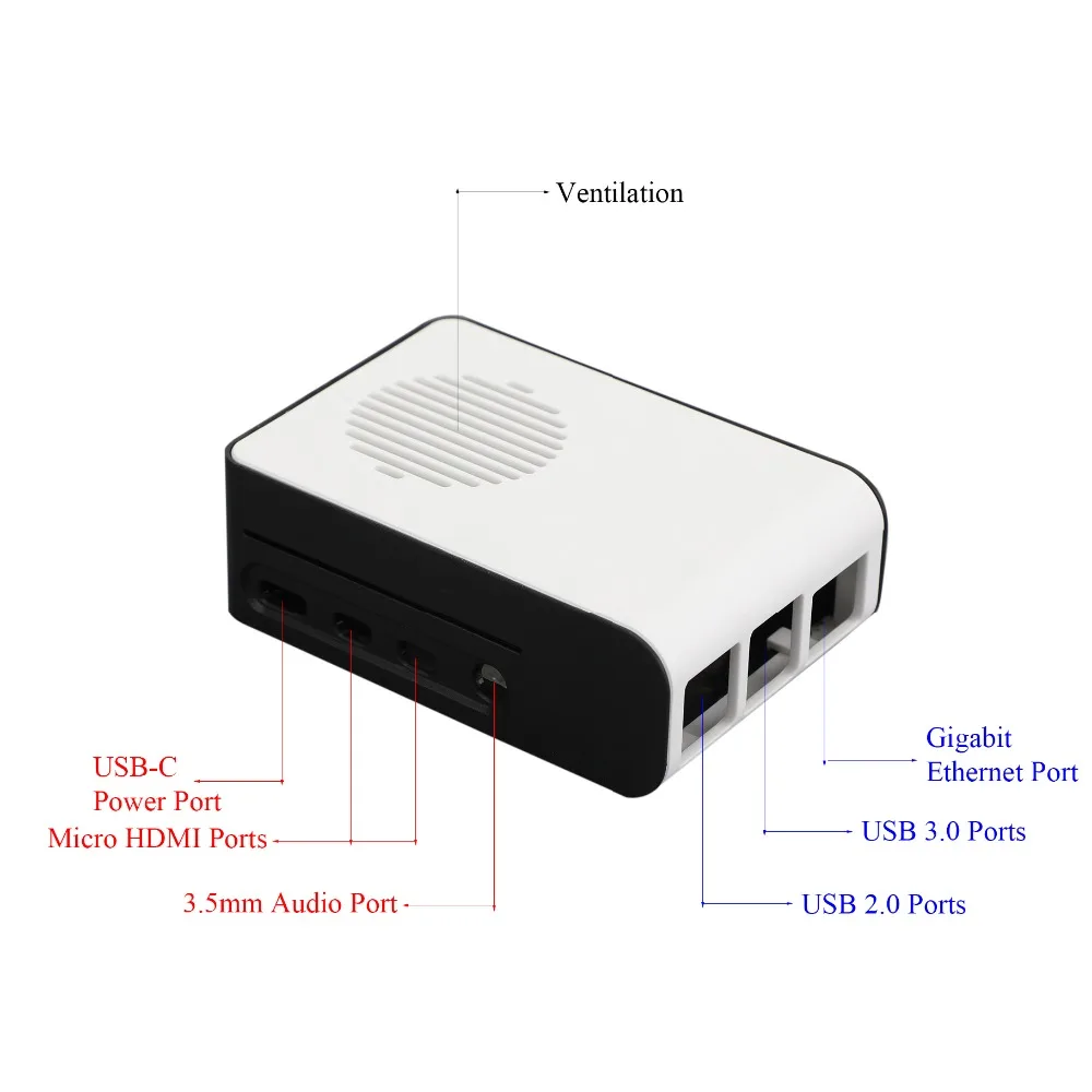 Funda protectora ABS, carcasa con ventilador de refrigeración DC 5V 0.2A para Raspberry Pi 4 Modelo B