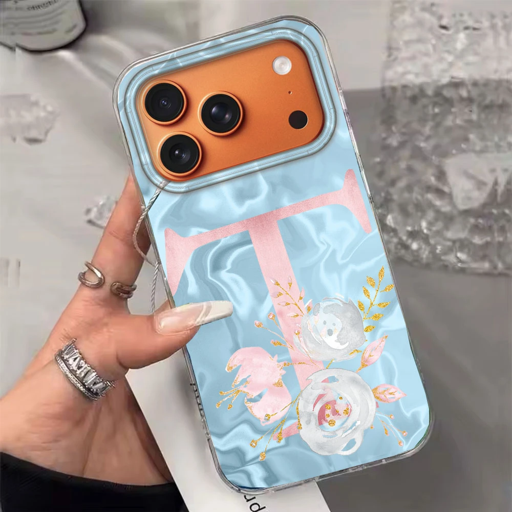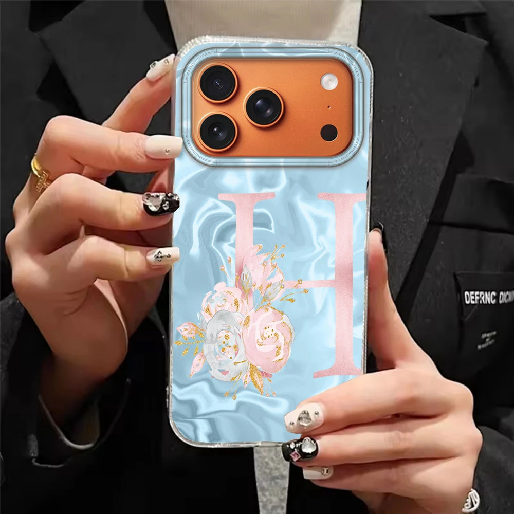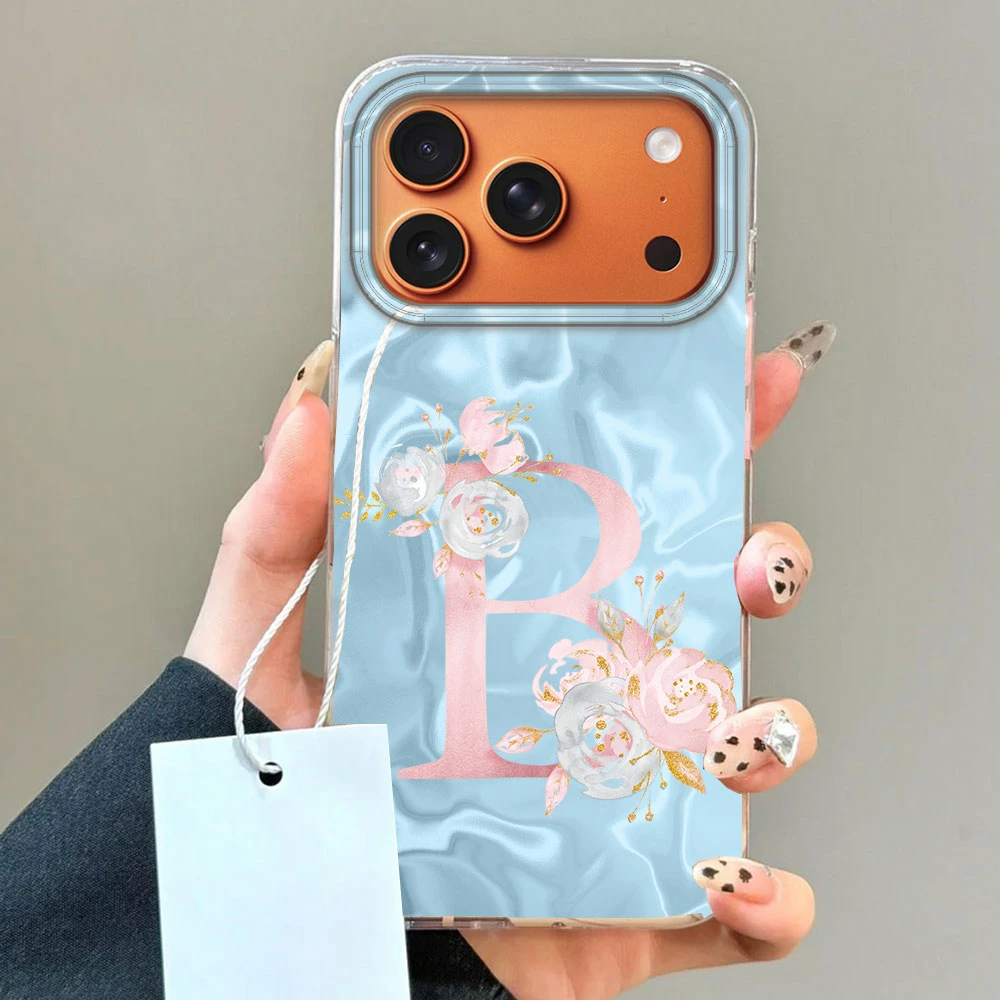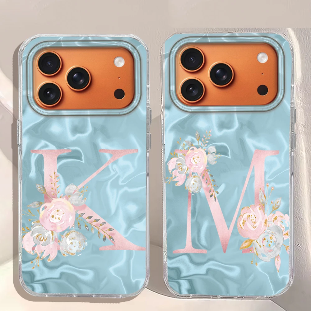 Comprar Caja rosada del teléfono de la flor de la letra A-Z de la pareja de Bule para Apple iphone 17 Air 16 Pro Max Plus 16e Funda de silicona TPU Fundas a prueba de golpes