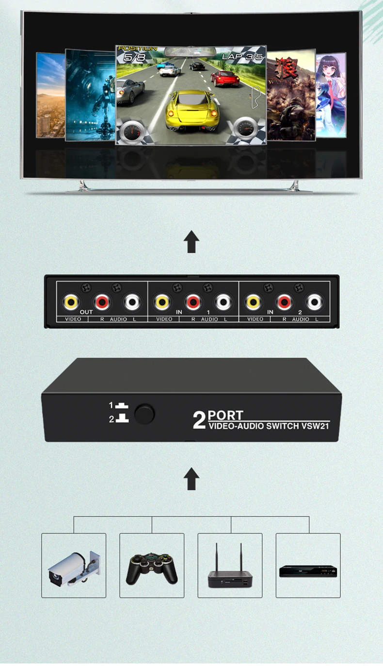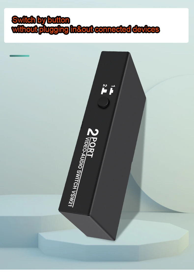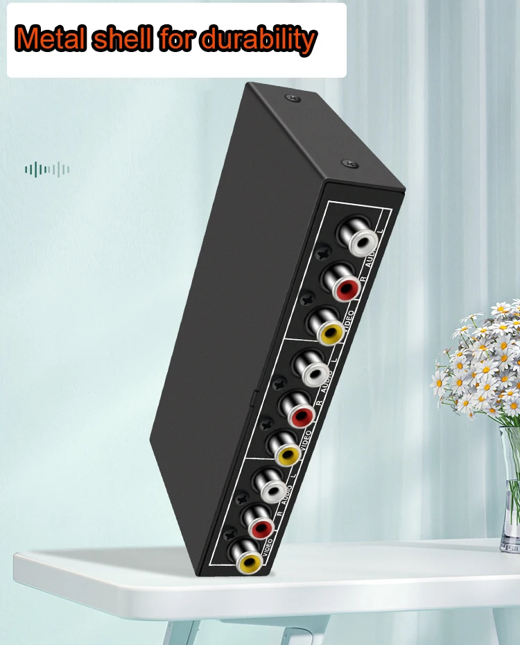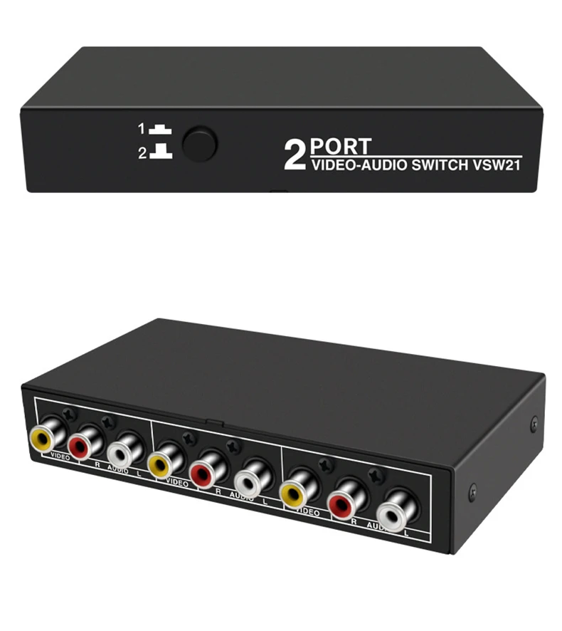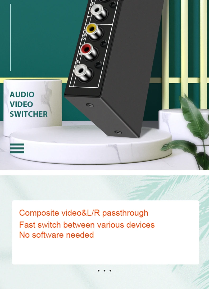Este conmutador AV compuesto es de alta calidad.Con este conmutador AV puedes seleccionar fácilmente entre más de 1 entrada y enviarla a Display.
