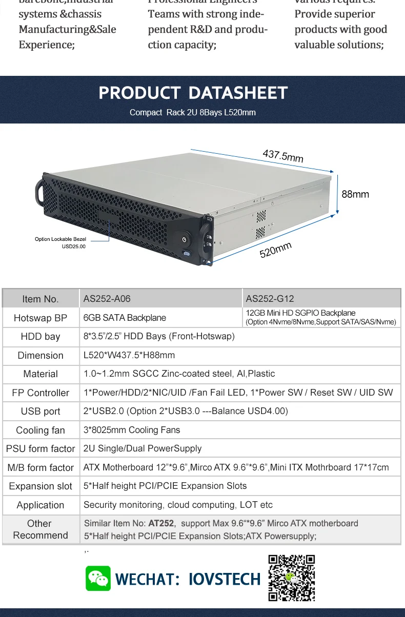 Caja de servidor de almacenamiento de 8 bahías, montaje en rack 2U, venta directa de fábrica, L520mm, compatible con placa ATX, fuente de alimentación 2U