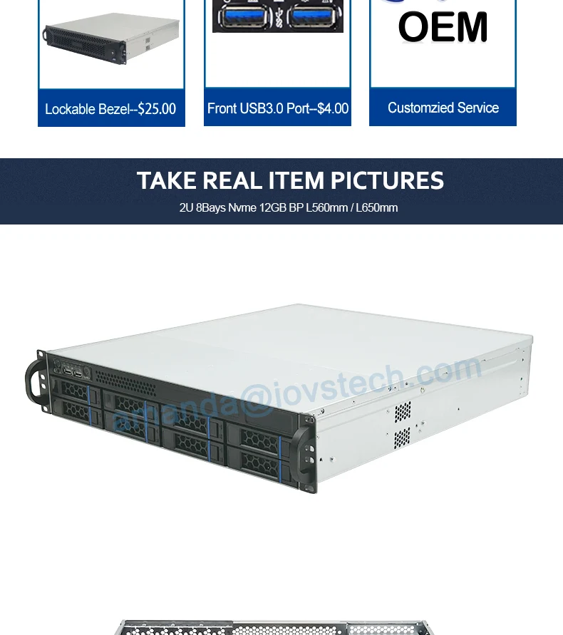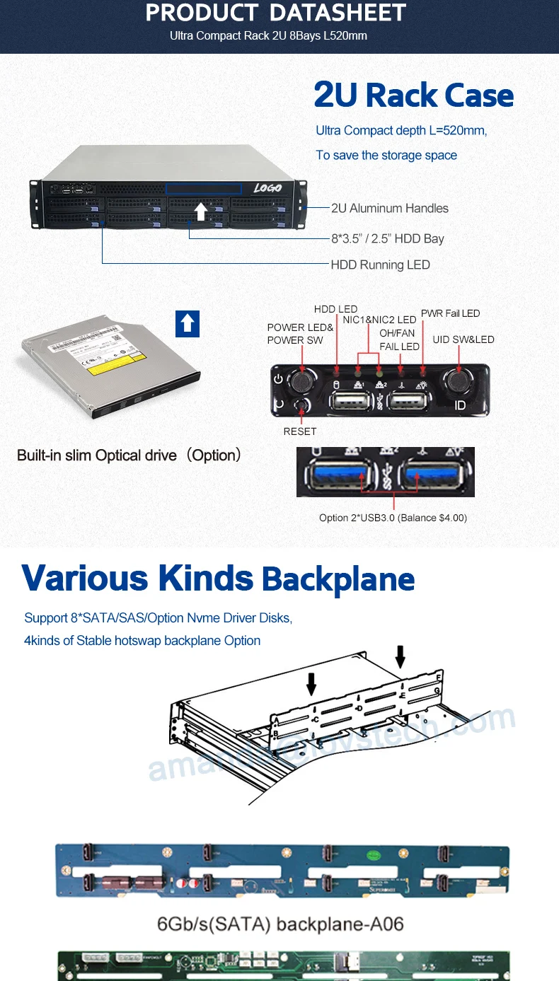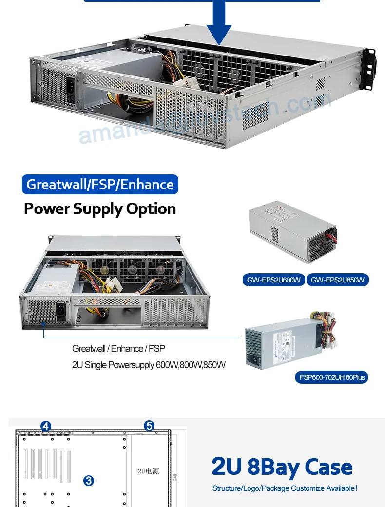 Comprar Caja de servidor de almacenamiento de 8 bahías, montaje en rack 2U, venta directa de fábrica, L520mm, compatible con placa ATX, fuente de alimentación 2U