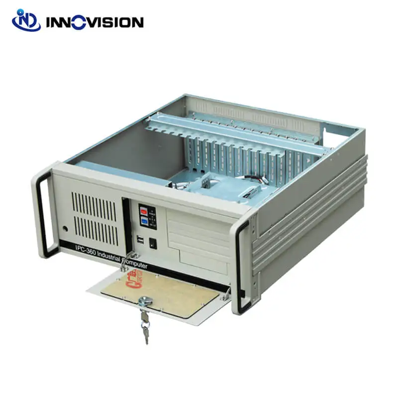 IPC360 son los chasis clásicos de computadora industrial de montaje en rack 4U. Admite 3*5.25”&1*3.Controladores de disco externos de 5” con diseño de goma antigolpes, mejoran el funcionamiento de los controladores de disco de manera más estable.Admite placa base ATX con 7 * ranuras de expansión de altura completa o placa de fondo industrial con 14 * ranuras de expansión.También admite fuente de alimentación ATX o fuente de alimentación Mini redundante.Es una buena opción para elcontrol industrial, transporte inteligente, automatización mecánica, IOT, monitoreo de seguridad, etc.