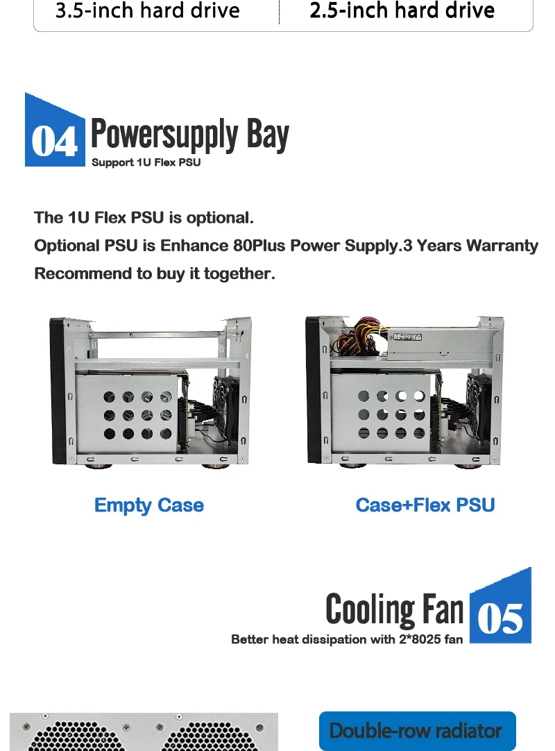 Bahías de almacenamiento6 bahías de disco duro de 3,5 "/2,5" (nuevo diseño de herramientas)