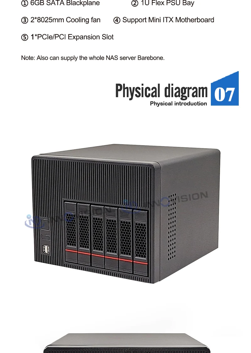 Case para servidor NAS Tooless HDD de 6 barcos con backplane sata de 6 GB para servidor de almacenamiento NAS
