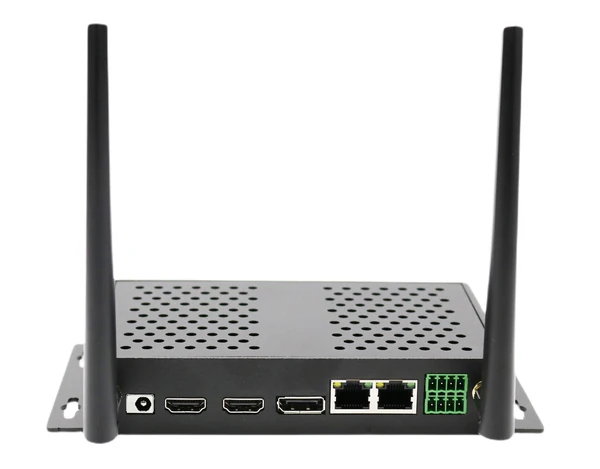 Mekotronics R58X tiene HDMI 2.1 y DPvídeosalida, y también entrada HDMIinterfaz, entonces R58Xpuede soportardospantallasmostrar diferentes contenidos al mismo tiempo;R58 se puede utilizar como boletín digital.terminal,reproductor multimedia de señalización digital yotras aplicaciones.