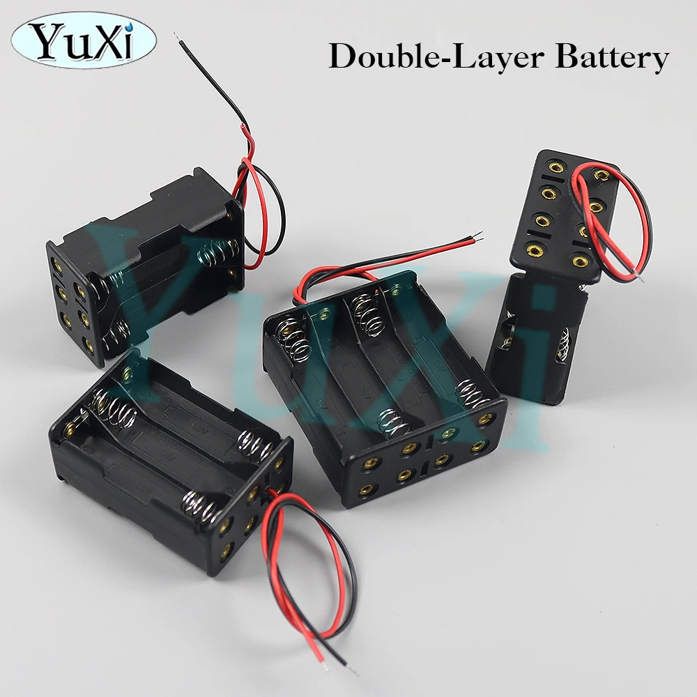 Comprar Caja de soporte de batería AAA, caja de batería de doble capa AAA de 1,5 V, 1/2/4/6/8 ranuras, cajas de almacenamiento de batería con cables, 2 uds.