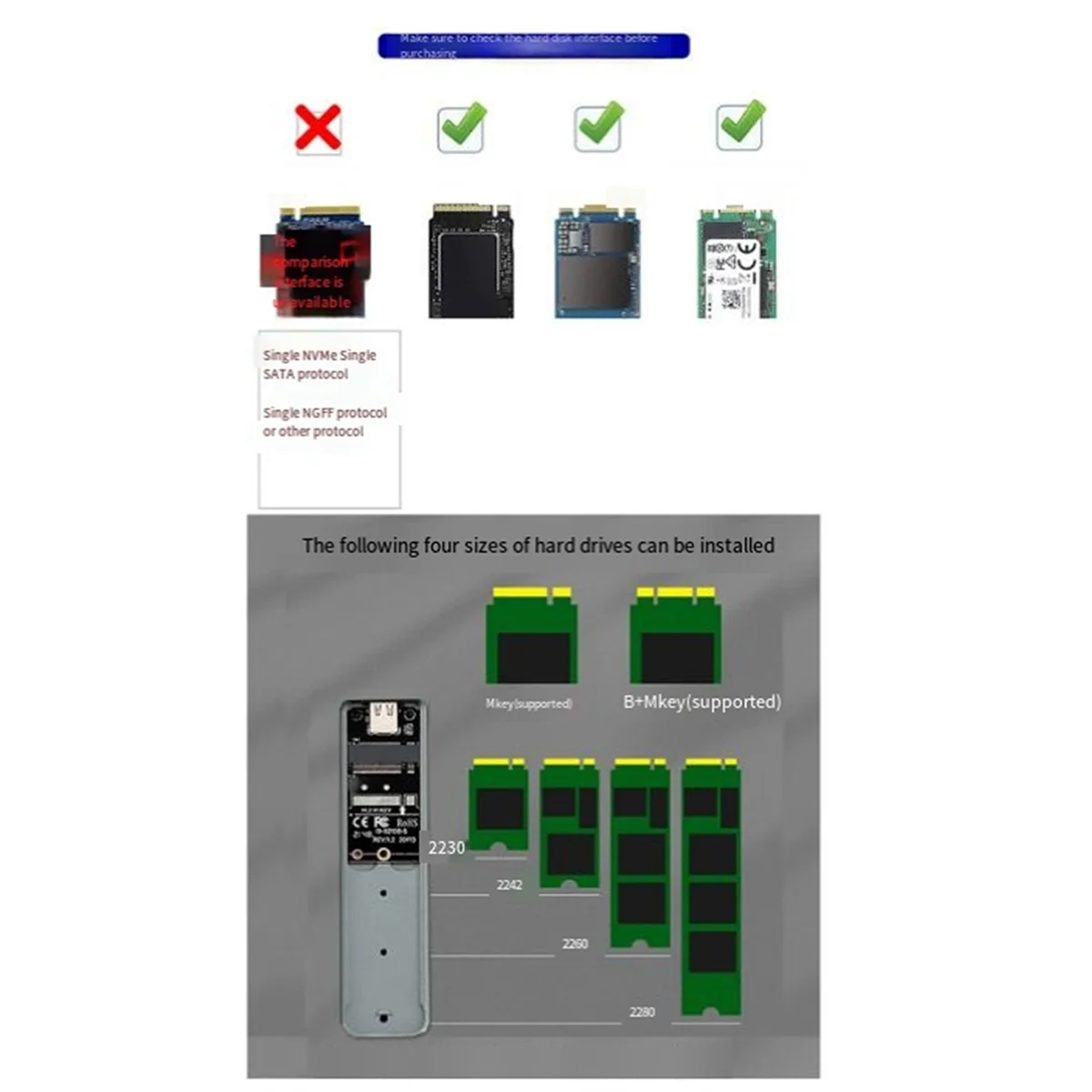 Comprar Caja SSD de aluminio M.2, compatible con NVMe/NGFF, SATA, TYPE-C, USB3.2, GEN2, aluminio, 10G, color gris espacial