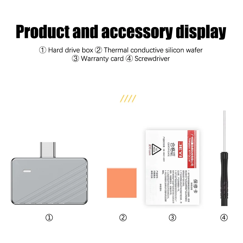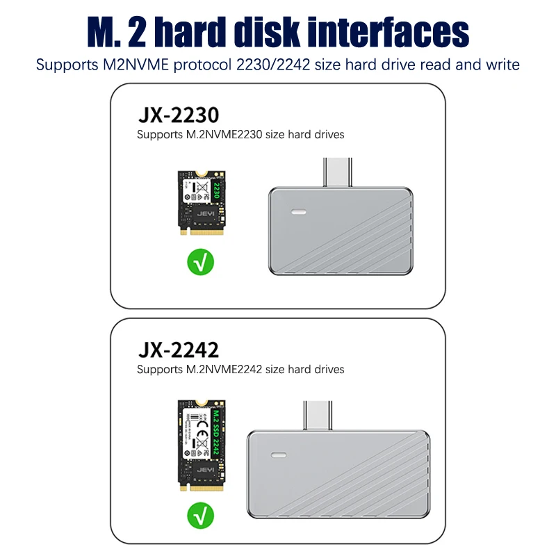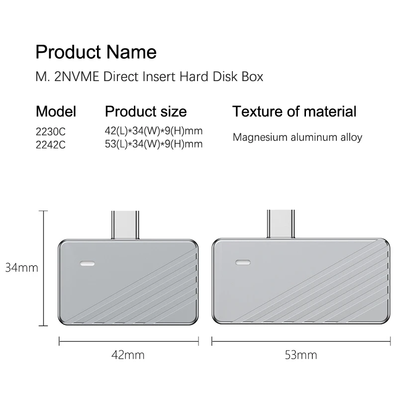 1.Transmisión de alta velocidad: la caja de disco duro de estado sólido del disco duro móvil 2230/2242 utiliza una interfaz USB 3.2, que admite transmisión de datos de ultra alta velocidad de 10 Gbps.Ya sea la copia de seguridad de archivos grandes o la transmisión de video de alta definición, se puede completar en poco tiempo, ahorrándole tiempo.