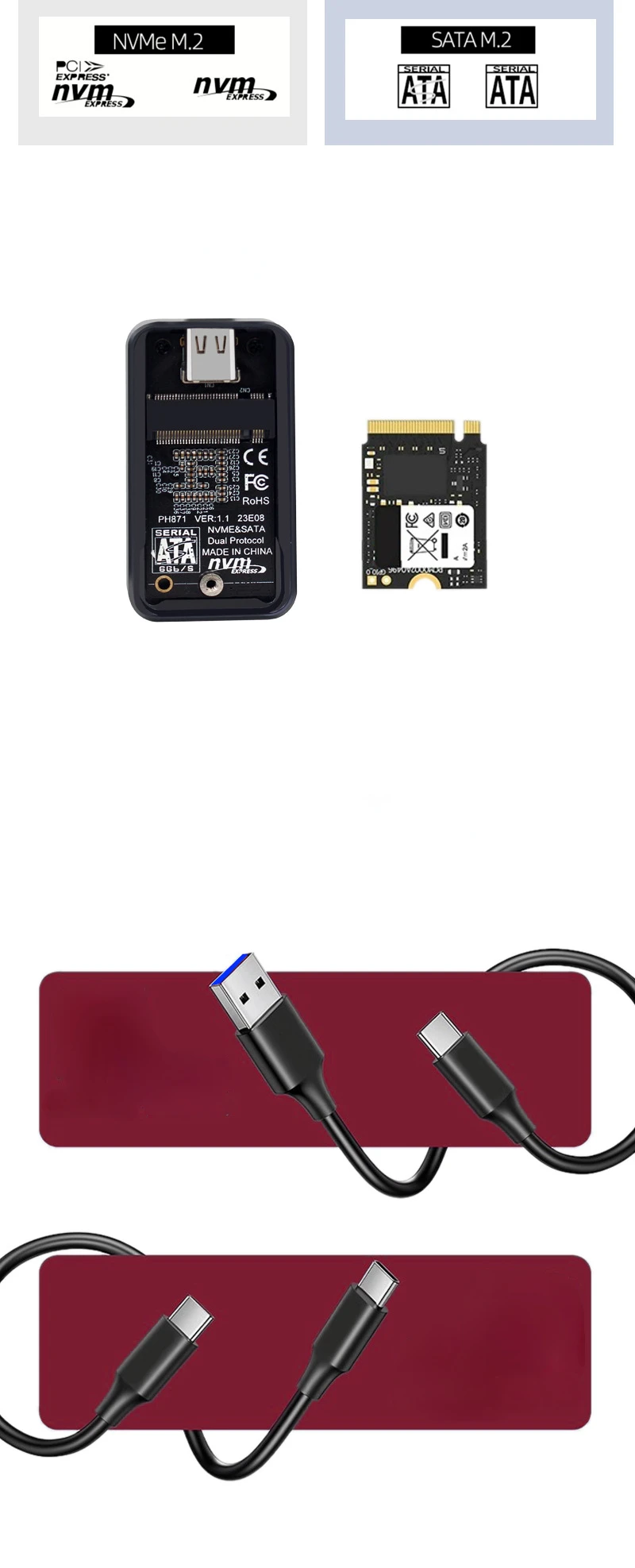 2.Admite protocolo NVME y Sata, adecuado para SSD M2 (tecla B+M/tecla M), SSD M.2 SATA