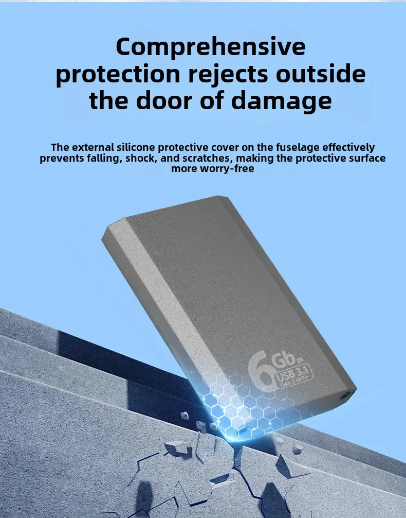 2.Diseño duradero y eficiente: el producto cuenta con una carcasa completa de aleación de aluminio que garantiza una disipación eficiente del calor, lo que lo convierte en una solución de almacenamiento duradera y confiable para sus datos.