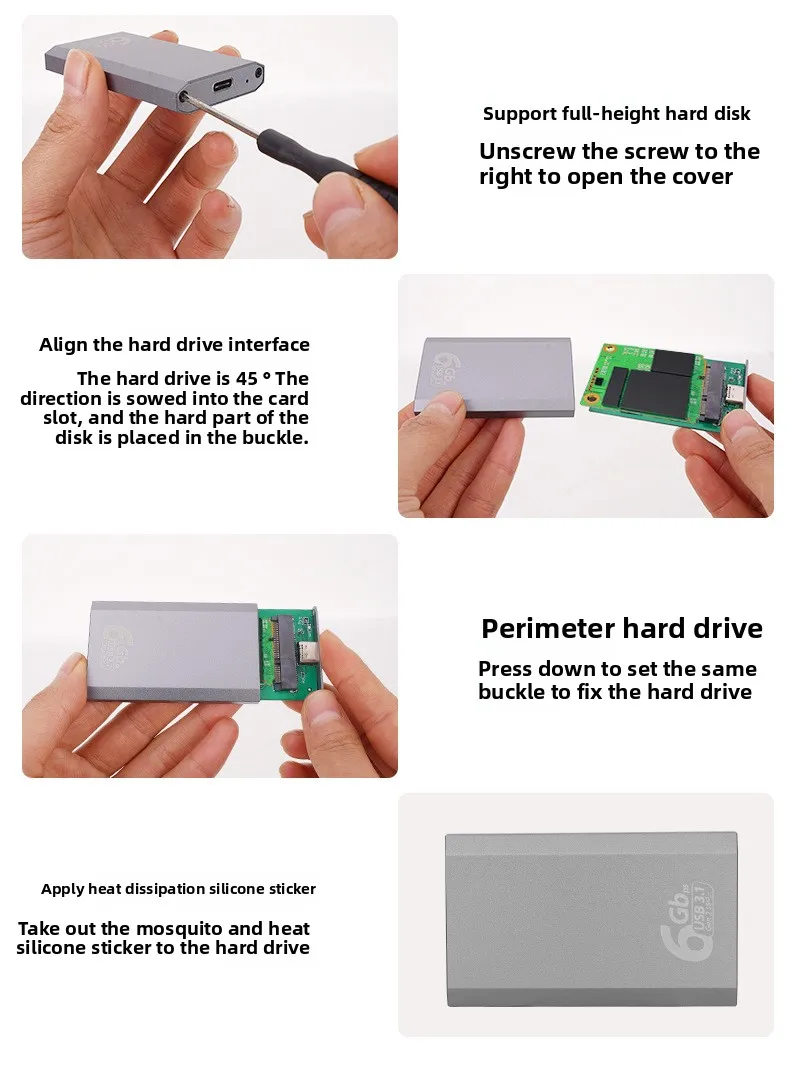 1.Conectividad de alta velocidad: Nuestro producto cuenta con conectividad mSATA a Type-C USB 3.1 gen 2 de 10 Gbps, que proporciona velocidades de transferencia de datos rápidas de hasta 6 Gbps, limitadas por el protocolo SATA.