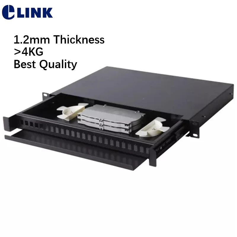 Comprar Caja de terminación de fibra, cajón de panel de parche de fibra óptica, 12/24, 19 ", SC, LC, ST, FC, SIN ADAPTADOR pigtail, 1,2mm de espesor, 4kg