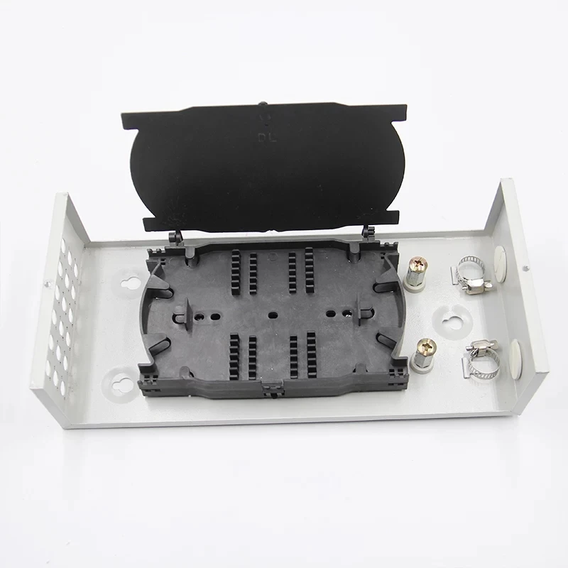 Comprar Caja de terminales en blanco FTTH FC 24 núcleos SPCC 24 puertos FC panel de conexión de fibra óptica caja de distribución FTTX Beige ELINK engrosado 1,0 MM