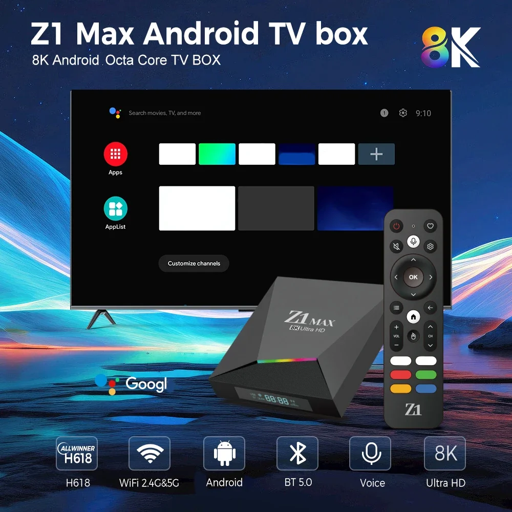 Comprar Caja de TV 8K Android 15 Z1 Max 4G 5G Dual WiFi Media Player soporte Allwinner H618 Quad Core BT 5,0 voz remota IPTV 4K 8K TV Box