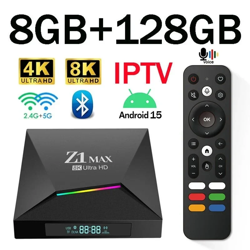 Comprar Caja de TV 8K Android 15 Z1 Max 4G 5G Dual WiFi Media Player soporte Allwinner H618 Quad Core BT 5,0 voz remota IPTV 4K 8K TV Box