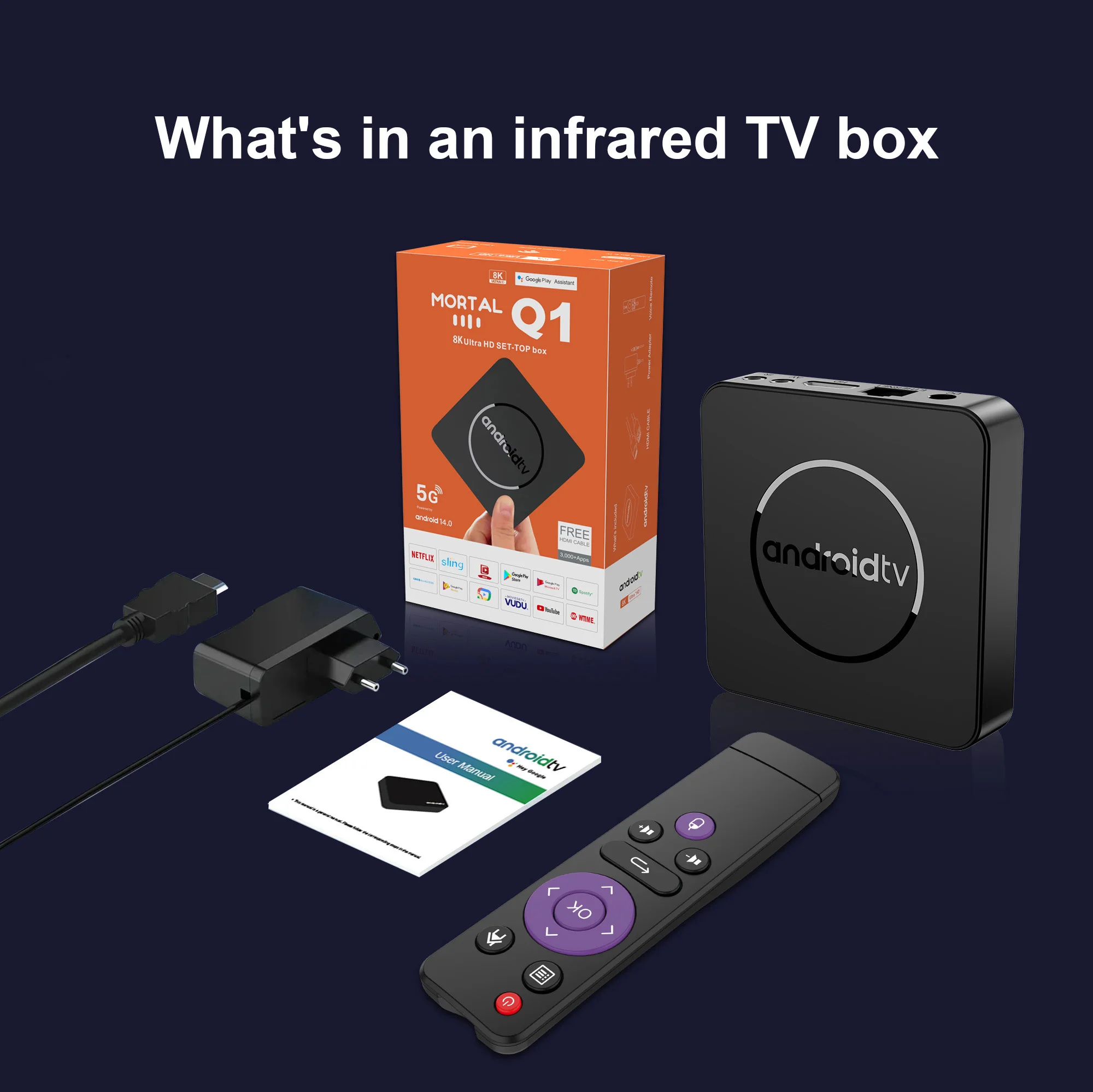 Android 14 Smart TV Box Mortal Q1 Allwinner H313 compatible con 2,4G5.8G Wifi dual 16G Rom Google Media Player TV Box conjunto de voz Top Box