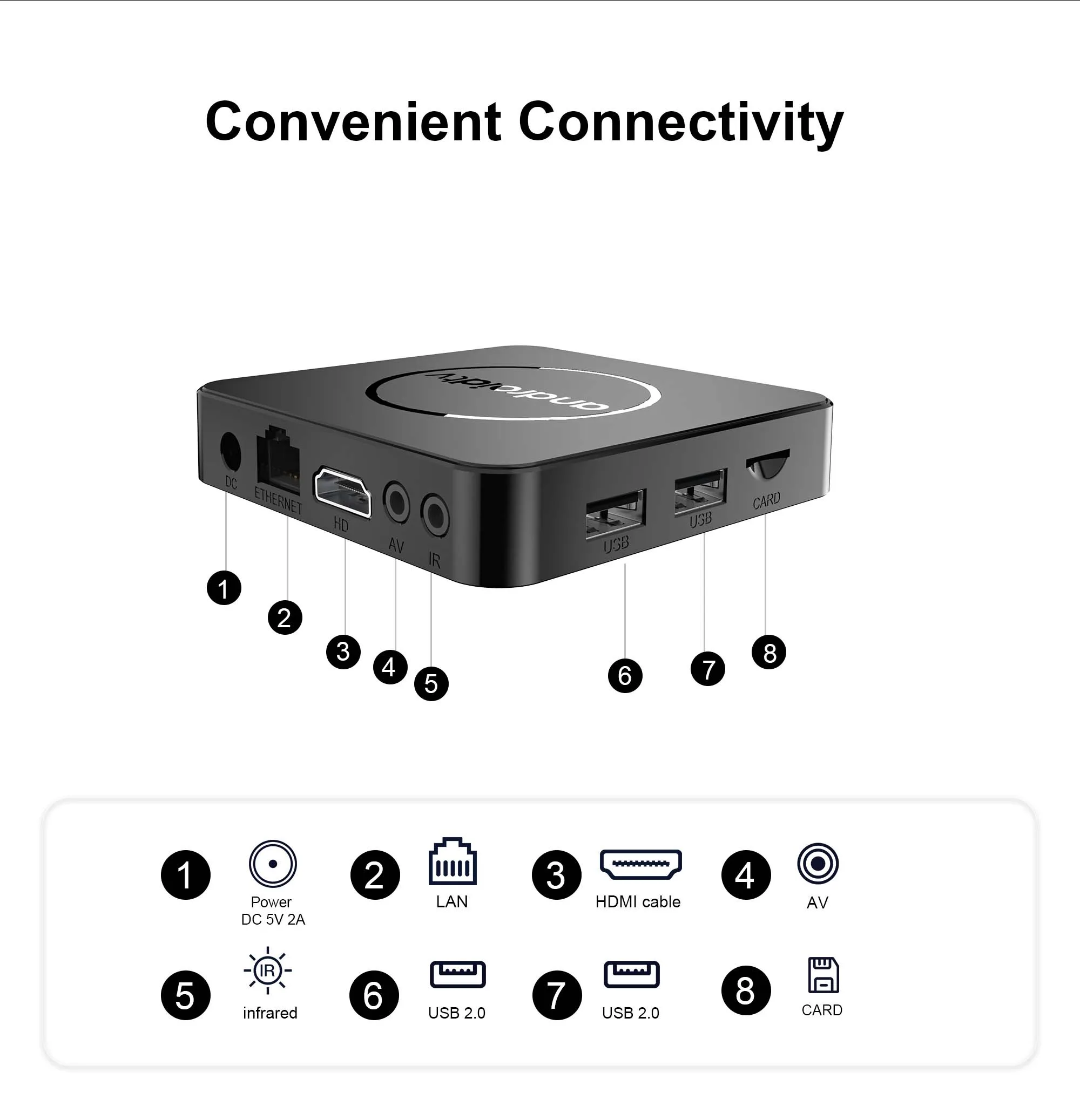 El Mortal Q1 Android TV Box funciona con el H313 más potente de la serie de chipsets Allwinner, con la CPU Quad Core ARM Cortex A53, Mali G31 OPenGL3.2 GPU, lo que garantiza que Android TV Box funcione perfectamente al cargar software, vídeos, juegos y aplicaciones.Proporciona una mejor interfaz de usuario y experiencia de usuario.