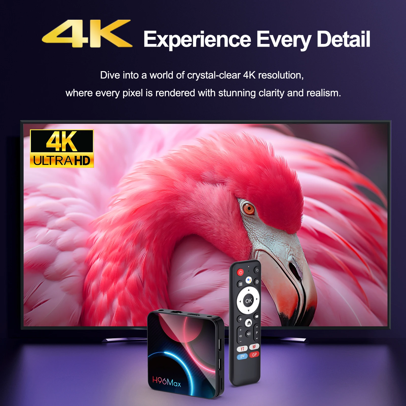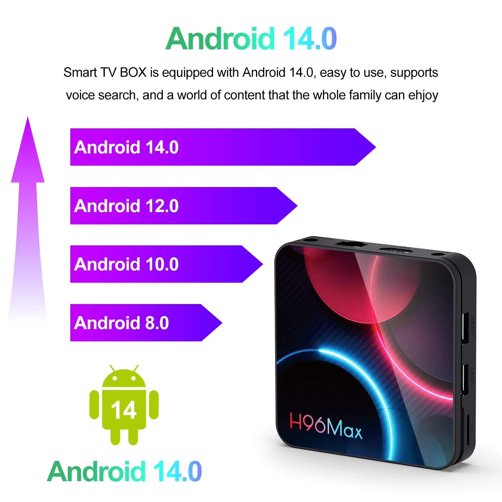 H96 MAX H313 Smart TV Box Android 14 ATV TV Box 4K@60fps 100M/LAN Wifi6 BT5.0 Asistente de voz de Google Reproductor multimedia AI Tvbox