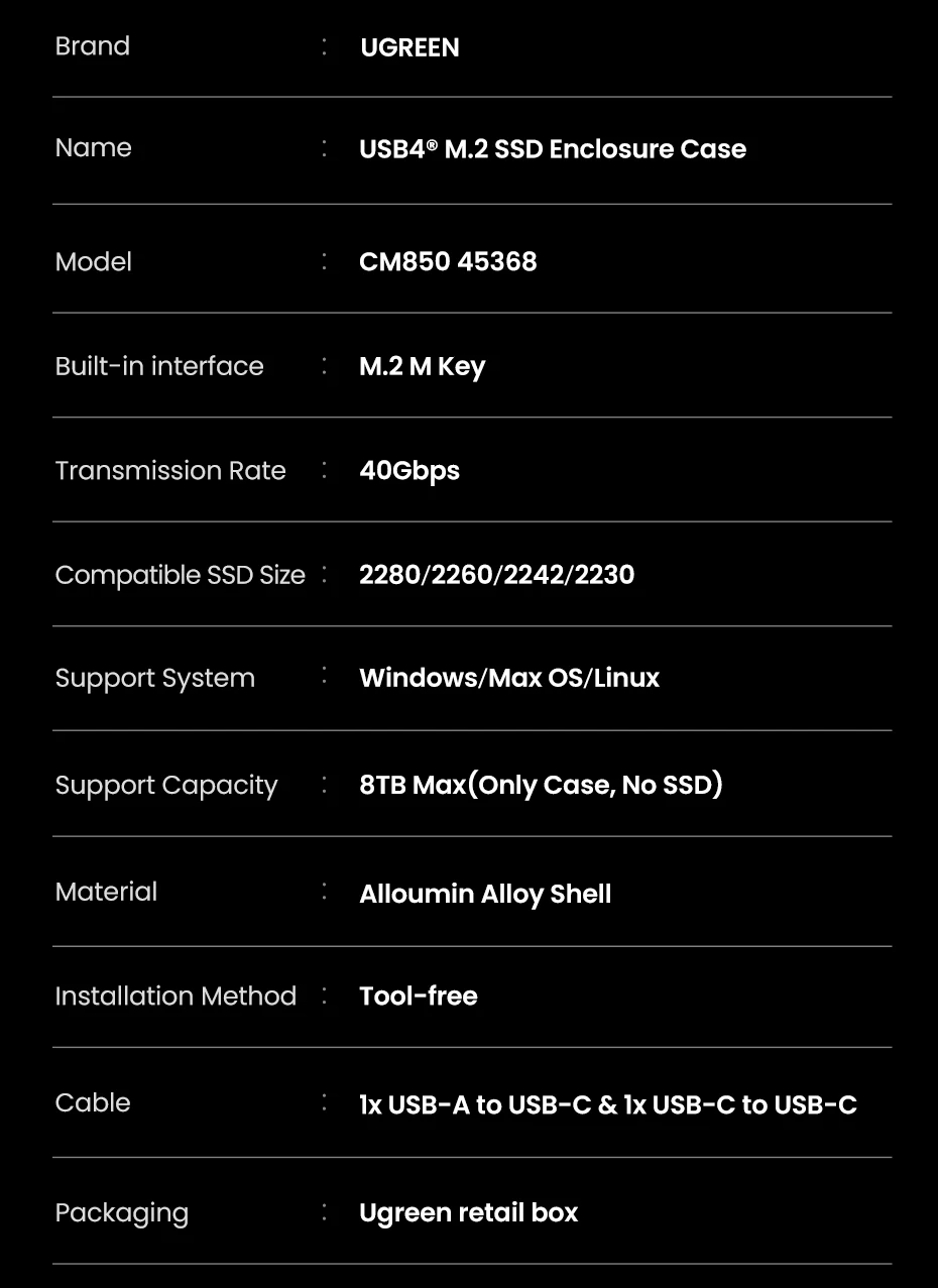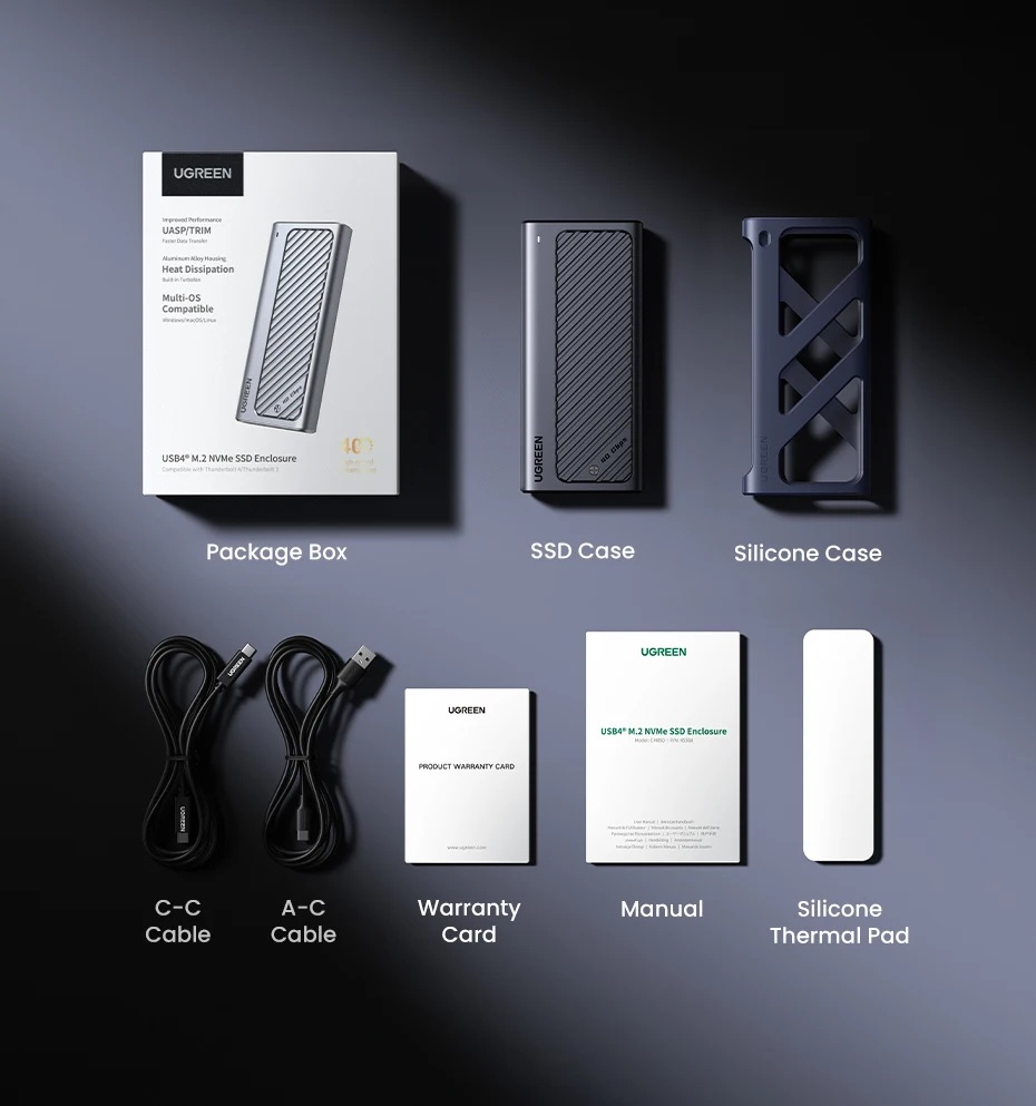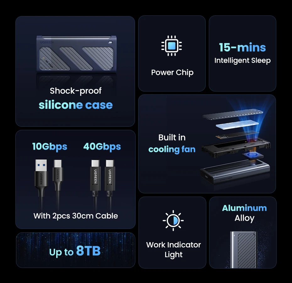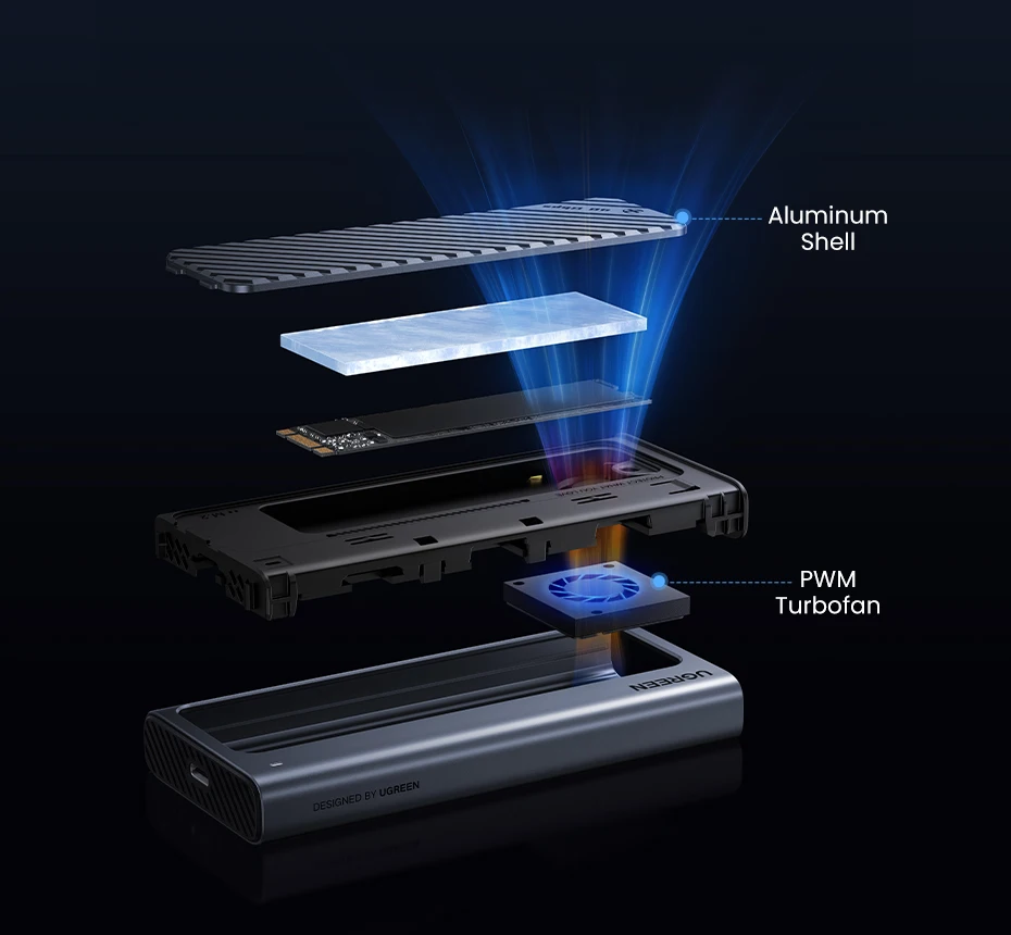 Comprar Caja UGREEN 40Gbps M.2 NVMe con ventilador de refrigeración carcasa SSD M.2 anticaída para MacBook carcasa M.2 para Thunderbolt 3/4/3,2/3,1