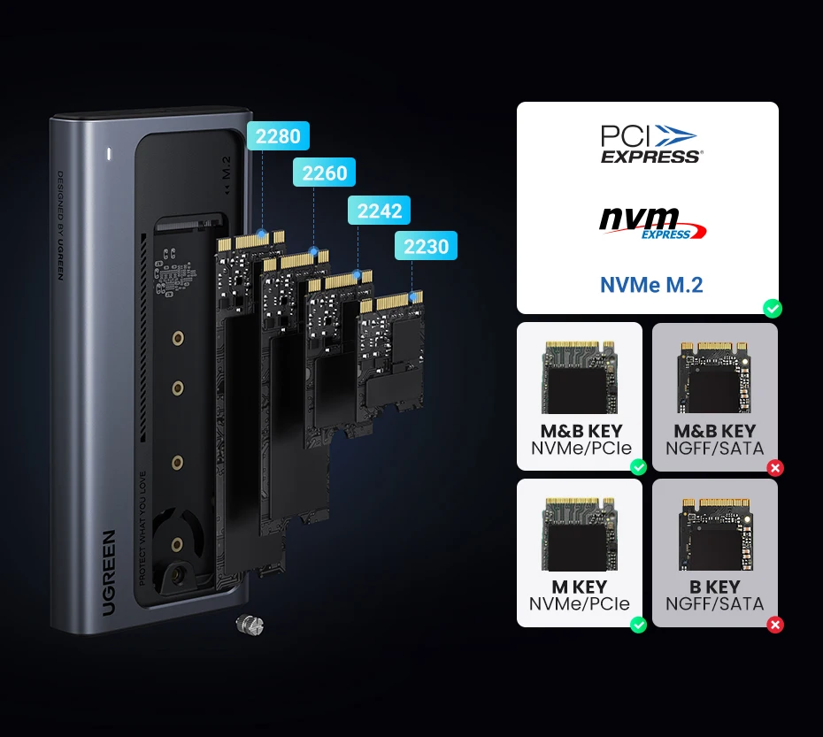 Compatible con 4 especificaciones de SSD que incluyen 2280, 2260, 2242, 2230