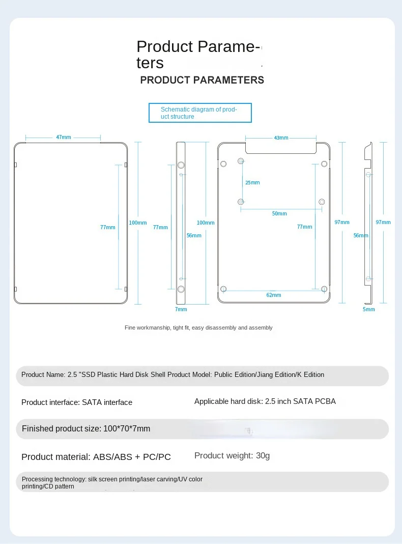 Comprar Caja de unidad de estado sólido SSD de 2,5 pulgadas, carcasa de plástico Ssd móvil, versión Jiang, Hg-02, No requiere tornillo