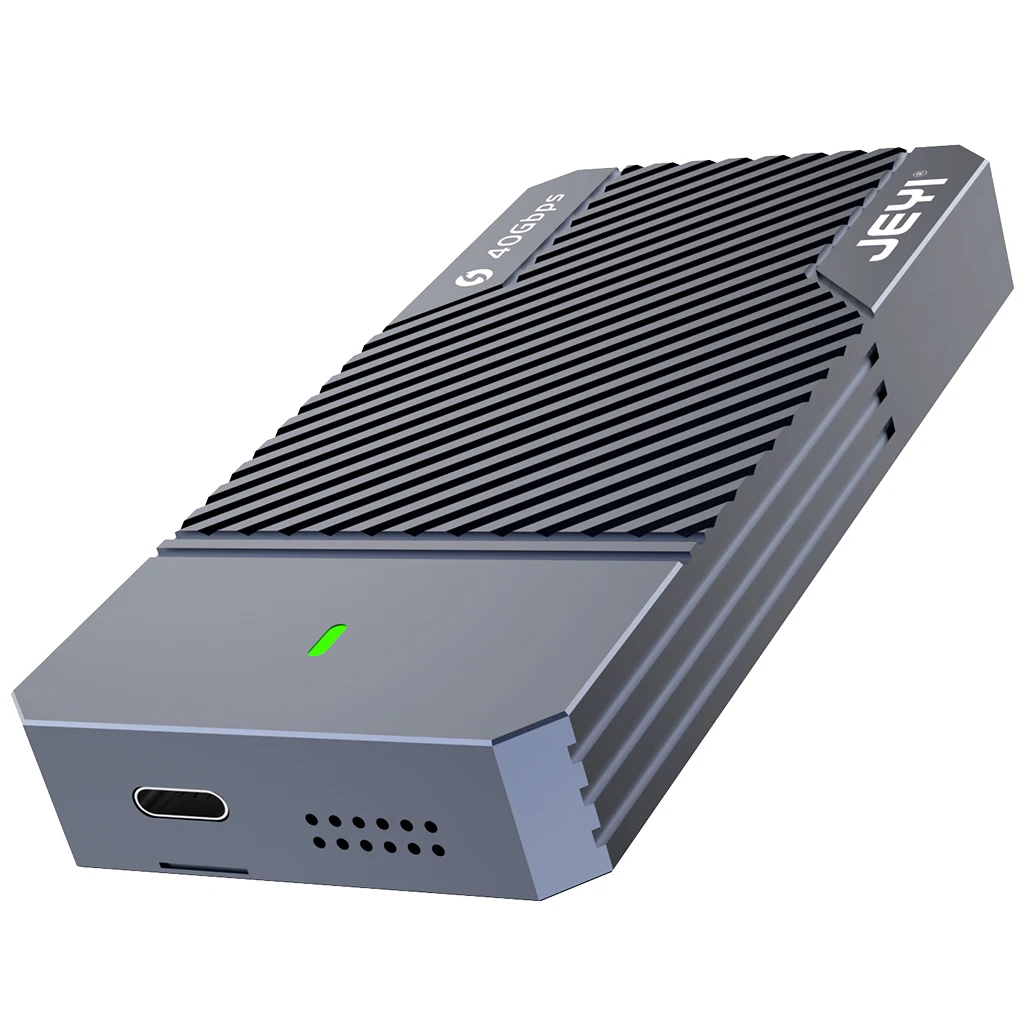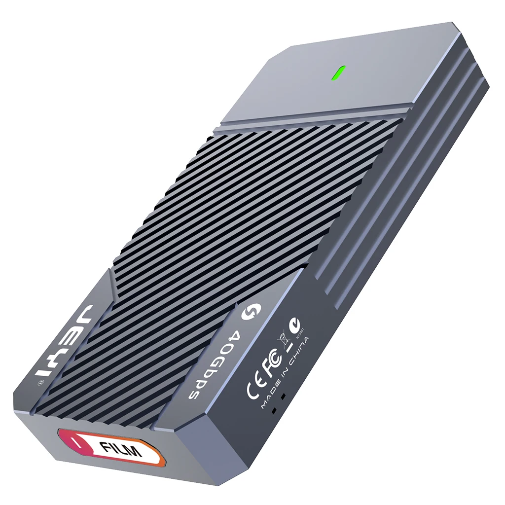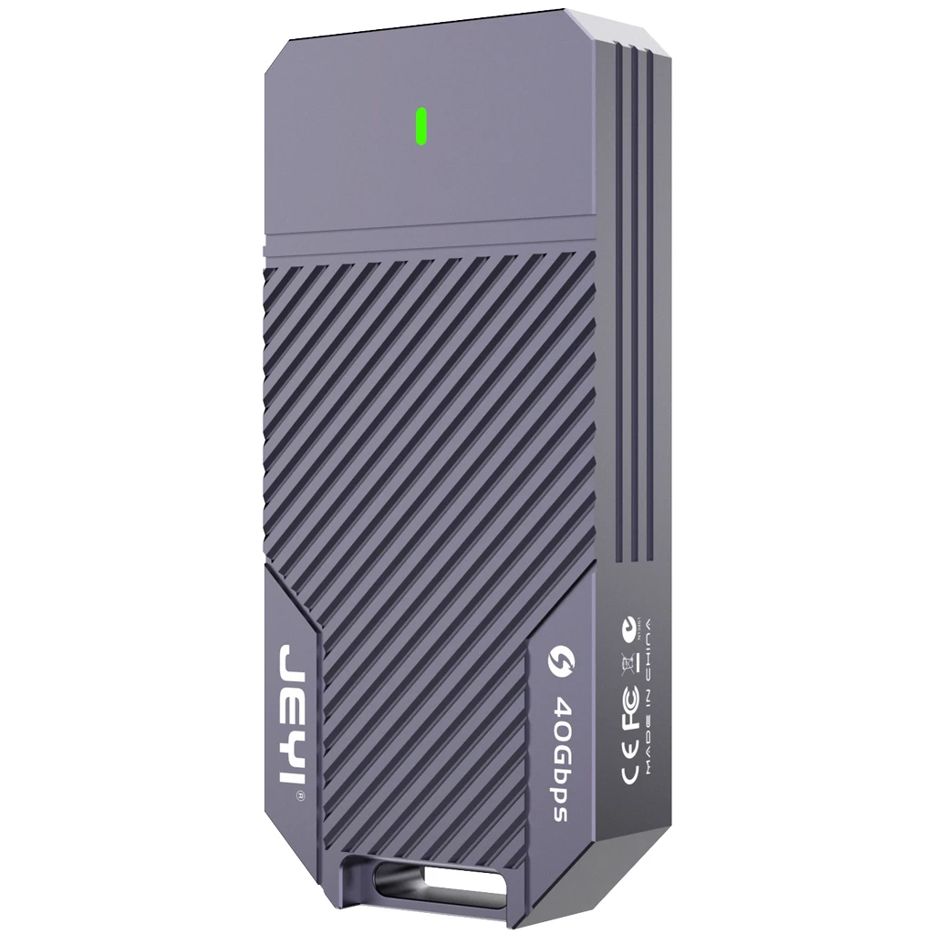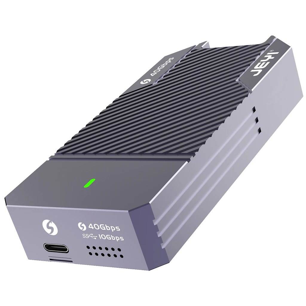 La carcasa JEYI ASM2464 NVMe 40G transforma su SSD M.2 NVMe en una carcasa de disco duro móvil compacta y portátil. Cuenta con una interfaz de salida USB 4,0 tipo C, que admite una velocidad máxima de transmisión de hasta 40Gbps. Equipado con el último chip ASM2464, es compatible con Thunderbolt3/4 y admite túneles duales PCIe y USB.