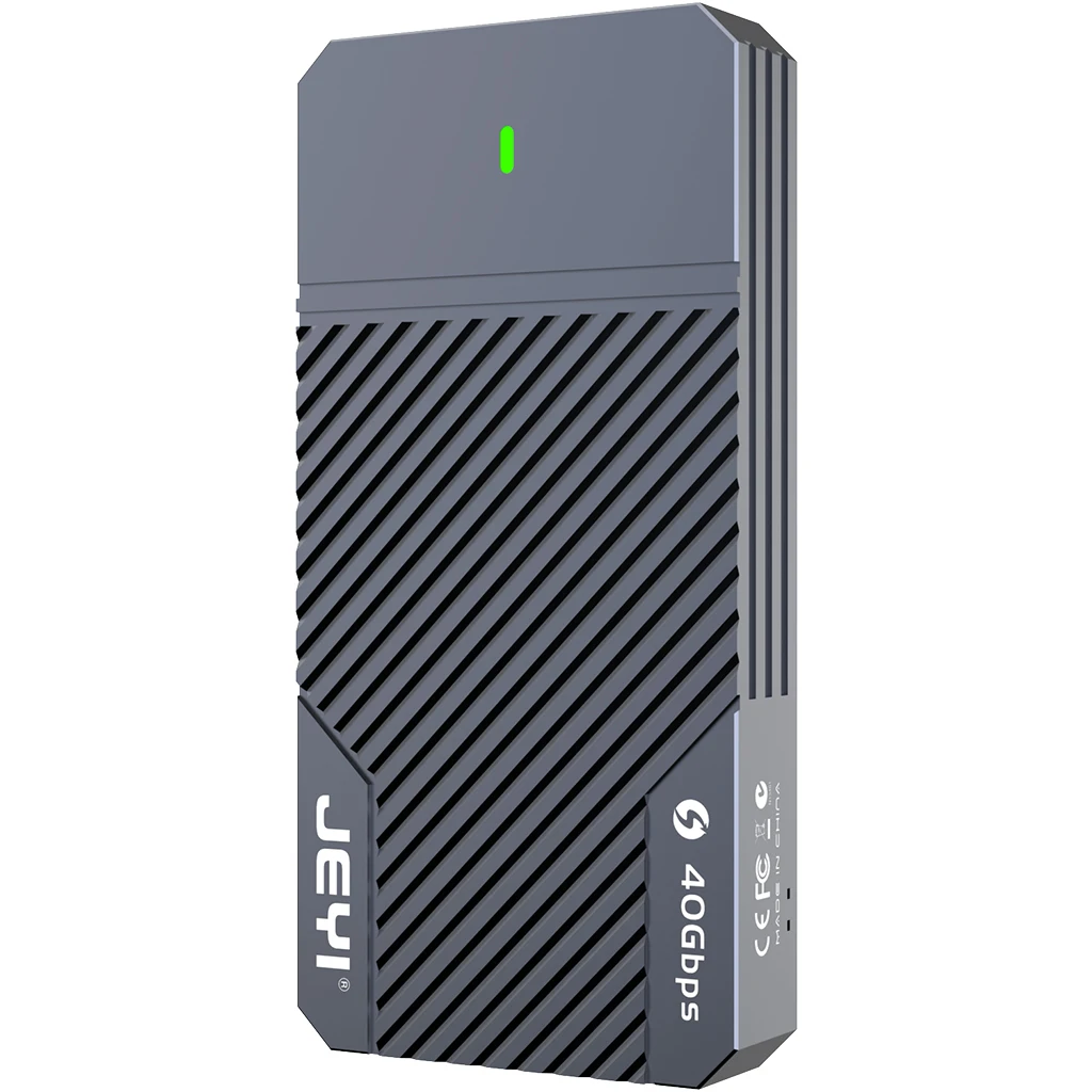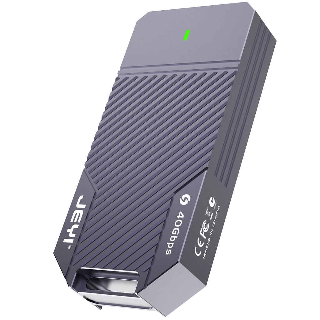 La carcasa JEYI ASM2464 NVMe 40G transforma su SSD M.2 NVMe en una carcasa de disco duro móvil compacta y portátil. Cuenta con una interfaz de salida USB 4,0 tipo C, que admite una velocidad máxima de transmisión de hasta 40Gbps. Equipado con el último chip ASM2464, es compatible con Thunderbolt3/4 y admite túneles duales PCIe y USB.