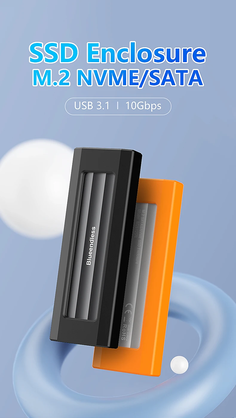 Caja SSD USB tipo C, funda de disco duro externa USB3.1 de 10 Gbps para M.2 NGFF NVME SATA B&M Key/M Key 2230 2242 2260 2280