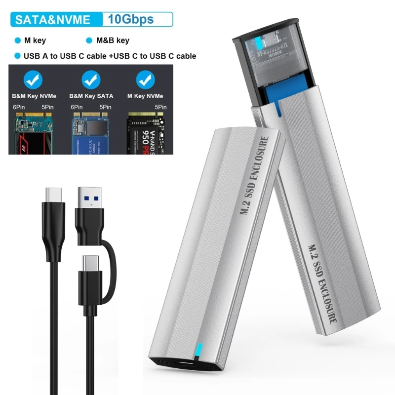 La carcasa SSD con velocidad de hasta 10 Gbps, M.2 NVMe a USB3.1 Gen2 y 6 Gbps, M.2 a USB 3.1 Gen1, son la solución perfecta para la transmisión y el respaldo de datos.