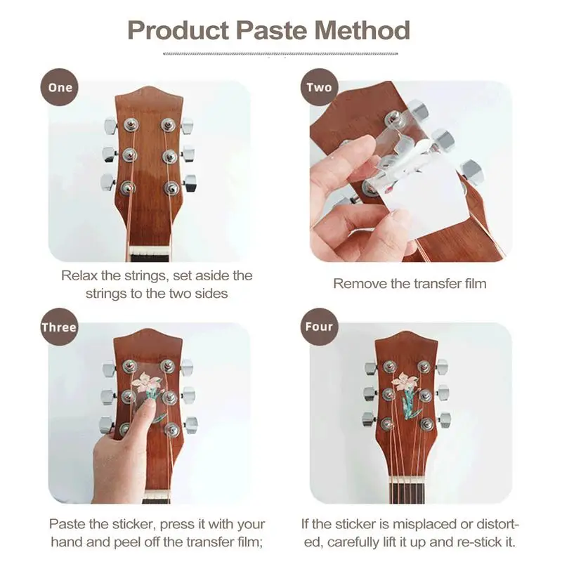 2.Eleva el atractivo visual: anima la estética de tu guitarra con estas impresionantes pegatinas que imitan incrustaciones reales.Enfatice su estilo y agregue elegancia sin ningún impacto en la calidad del sonido.