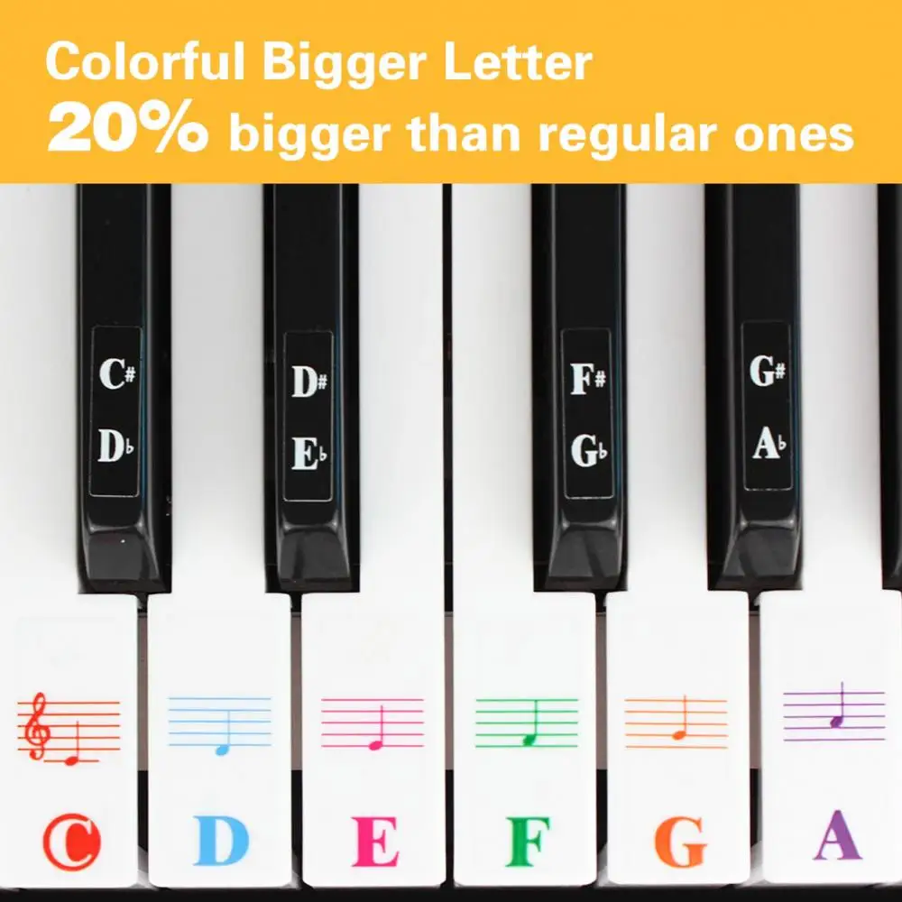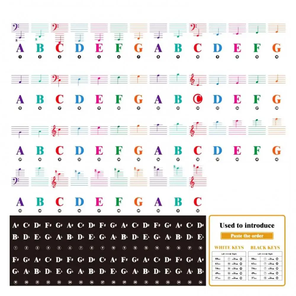49/61/88 teclas Piano teclado adhesivo pegatina letras multicolores calcomanía Decoración