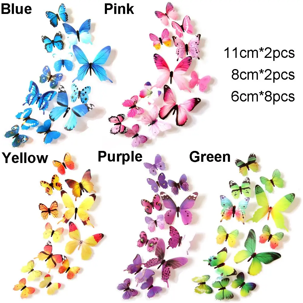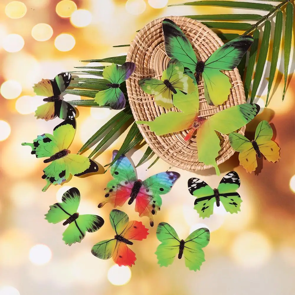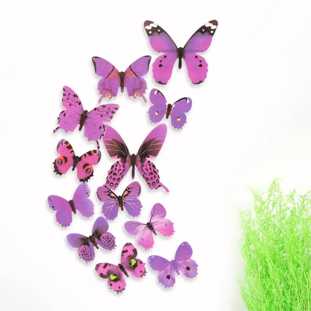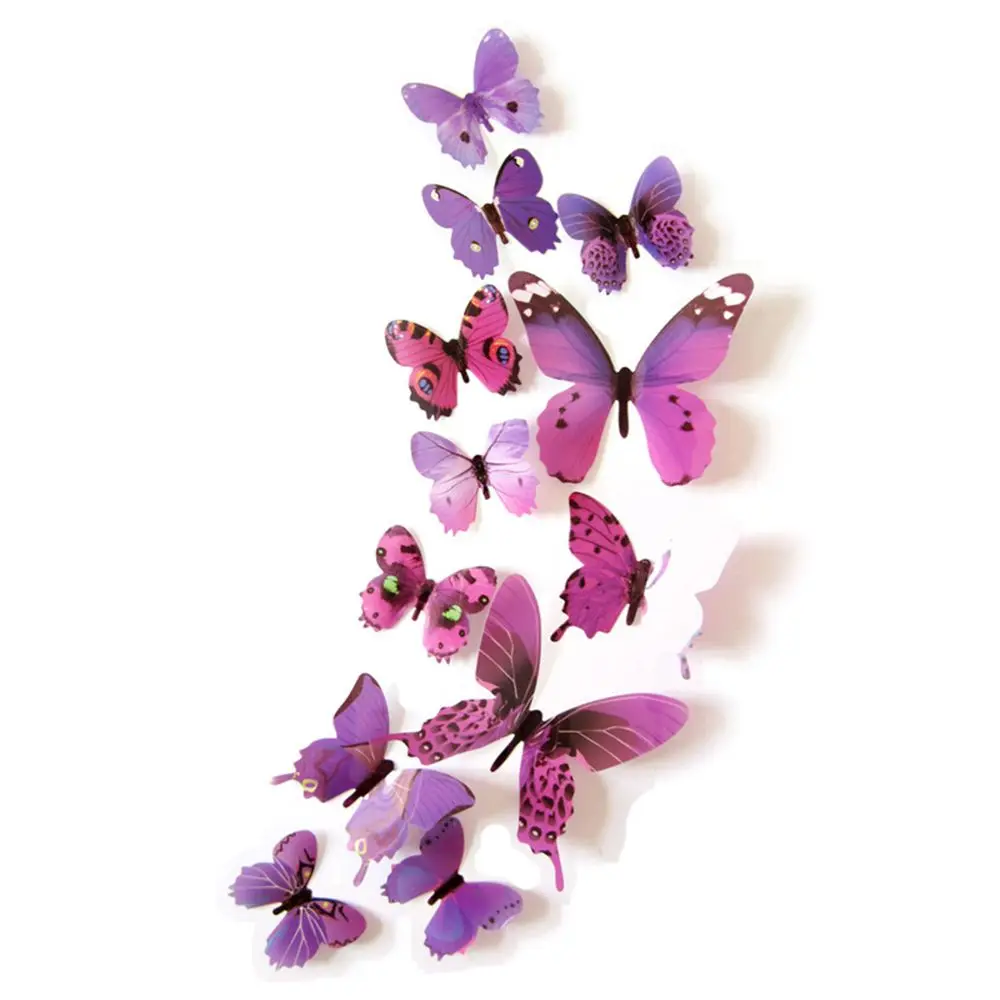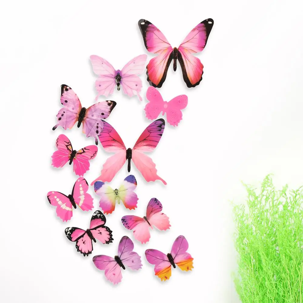 Comprar Calcomanías 3D de una sola capa para decoración de fiestas, pegatina de pared de mariposas, Mural de PVC, arte de pared, 12 unidades por juego