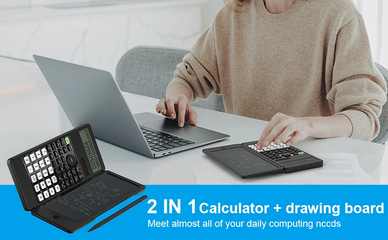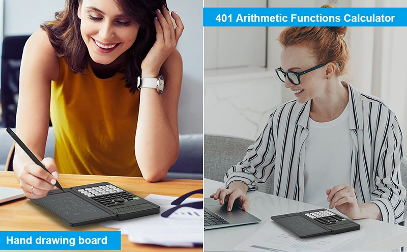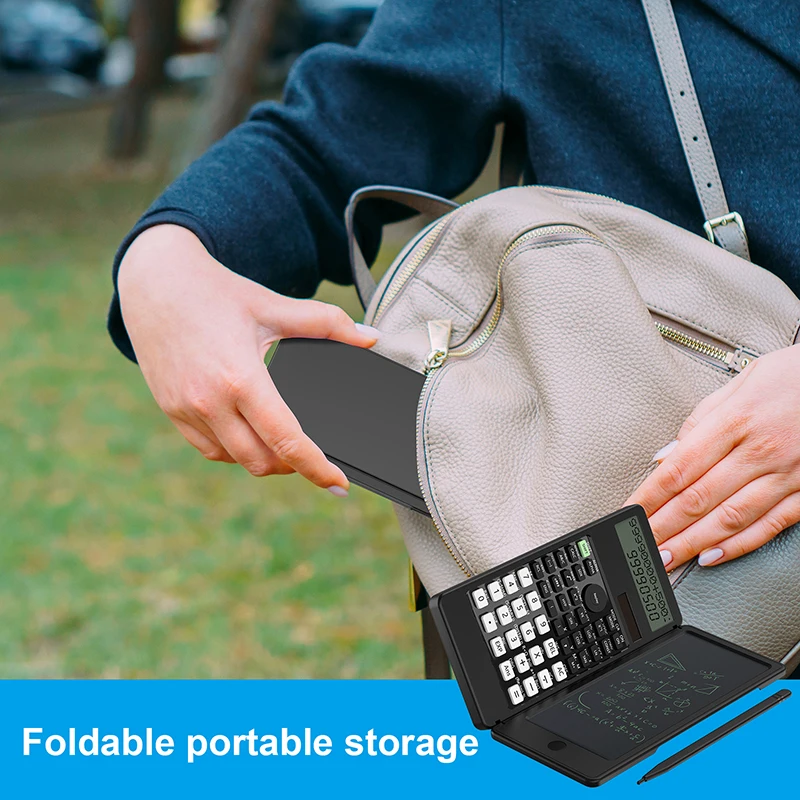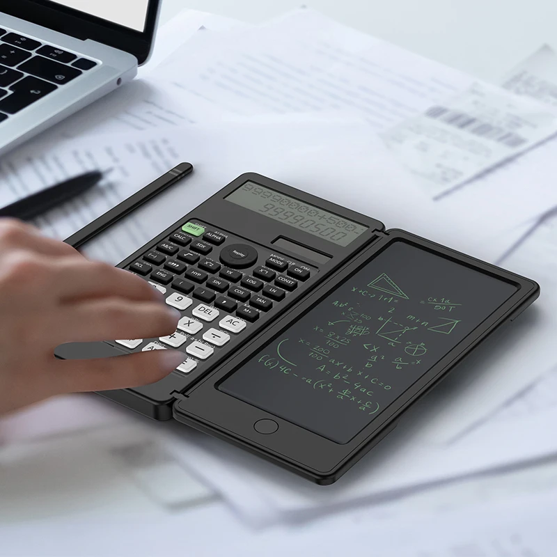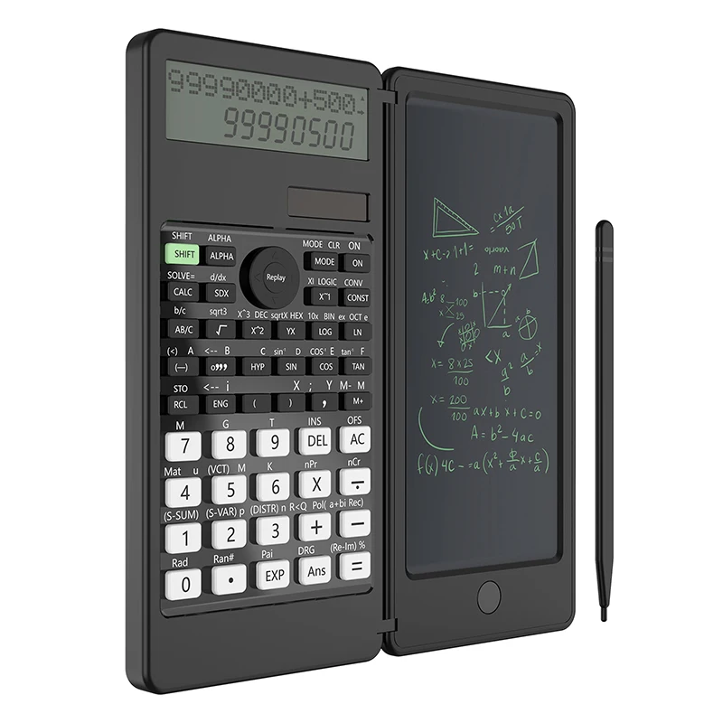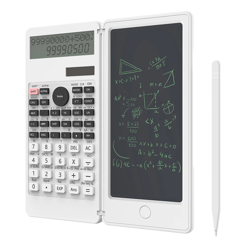 Comprar Calculadora científica con tableta de escritura, LCD Bloc de notas, 401 funciones informáticas, calculadora profesional plegable portátil, Solar