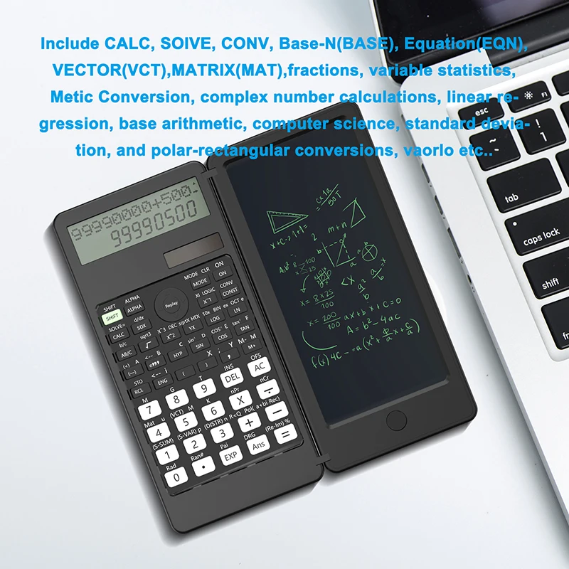 VAORLO-Calculadora científica con tableta de escritura LCD, 401 funciones, energía solar, calculadoras de ciencia, Bloc de notas, profesional, plegable tablero electrónico de dibujo/blocs de notas para escuela/Universidad/trabajo/oficina/negocios/investigadores/estudiantes/profesores PK 991MS 991ES calculadora