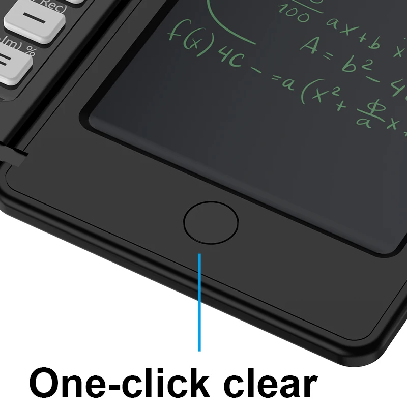 【ESCRITURA REPETIDO】 Calculadoras sin polvo ni tinta, escritura LCD, pantalla LCD sin luz azul que protege sus ojos. Equipado con un lápiz magnético ergonómico en la parte posterior, que le permite escribir/dibujar líneas brillantes y claras. Con un botón de borrado, después de su uso, puede borrar la pantalla completa con un clic para reutilizarla de manera efectiva, reducir el consumo de papel y lograr el objetivo de protección del medio ambiente.