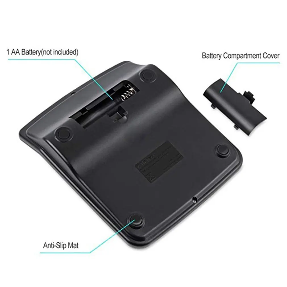 Característica:Energía bidireccional: solar y batería.Gran Pantalla de 12 dígitos.Conversión de impuestos y divisas, funciones y señales de mando.Descripción:Encienda y apague el botón para desplazarse por el ordenador.Especificaciones del producto:Material: plásticoTamaño: 150mm * 120mm * 25mmColor: negroPaquete incluido:1 * calculadoraNotas:1. Debido a la medición manual, indique una diferencia de 1 a 3 cm.2. Debido a la diferencia en la pantalla y la iluminación, es posible que la imagen no muestre el color real del artículo. Gracias.